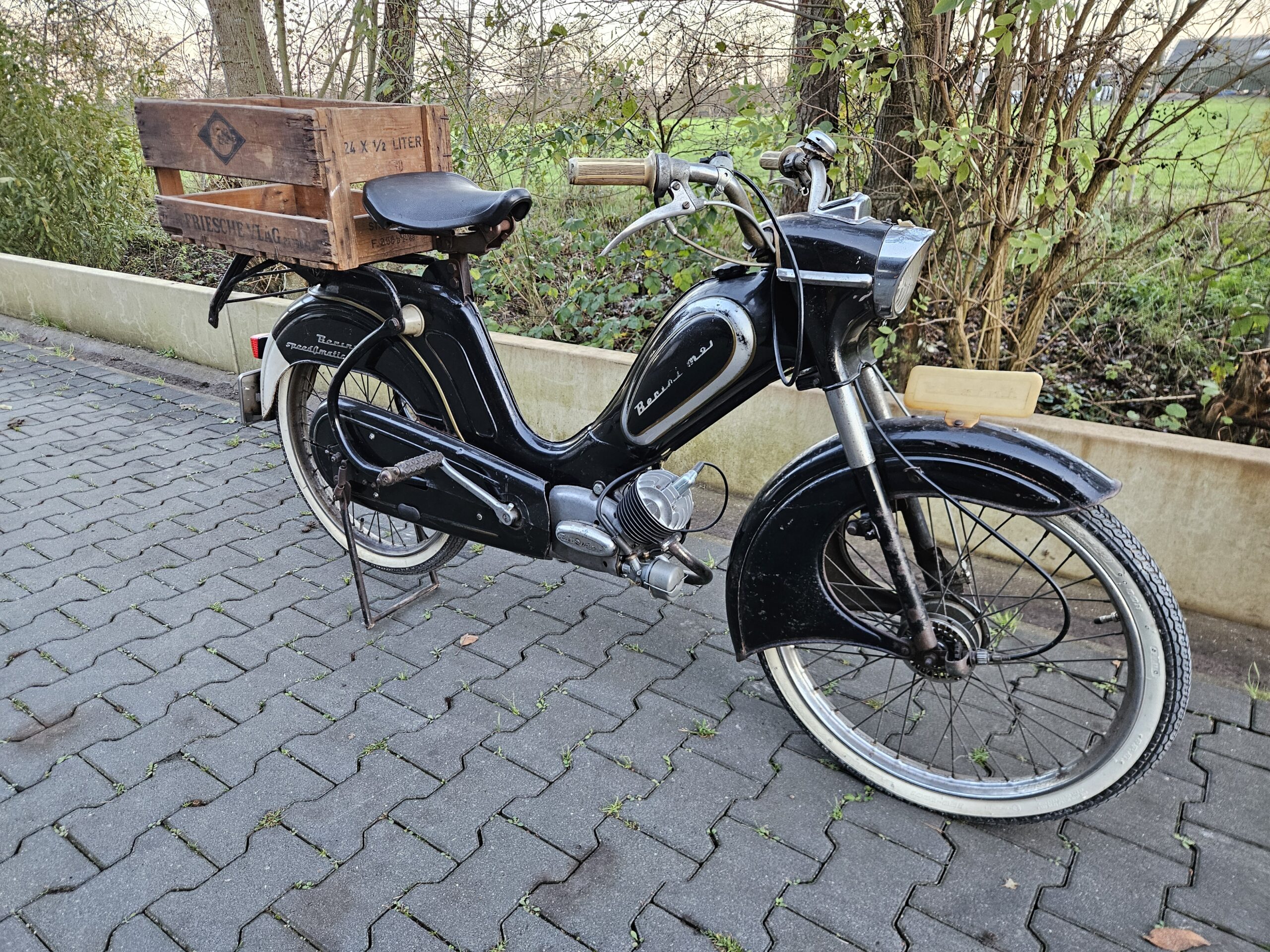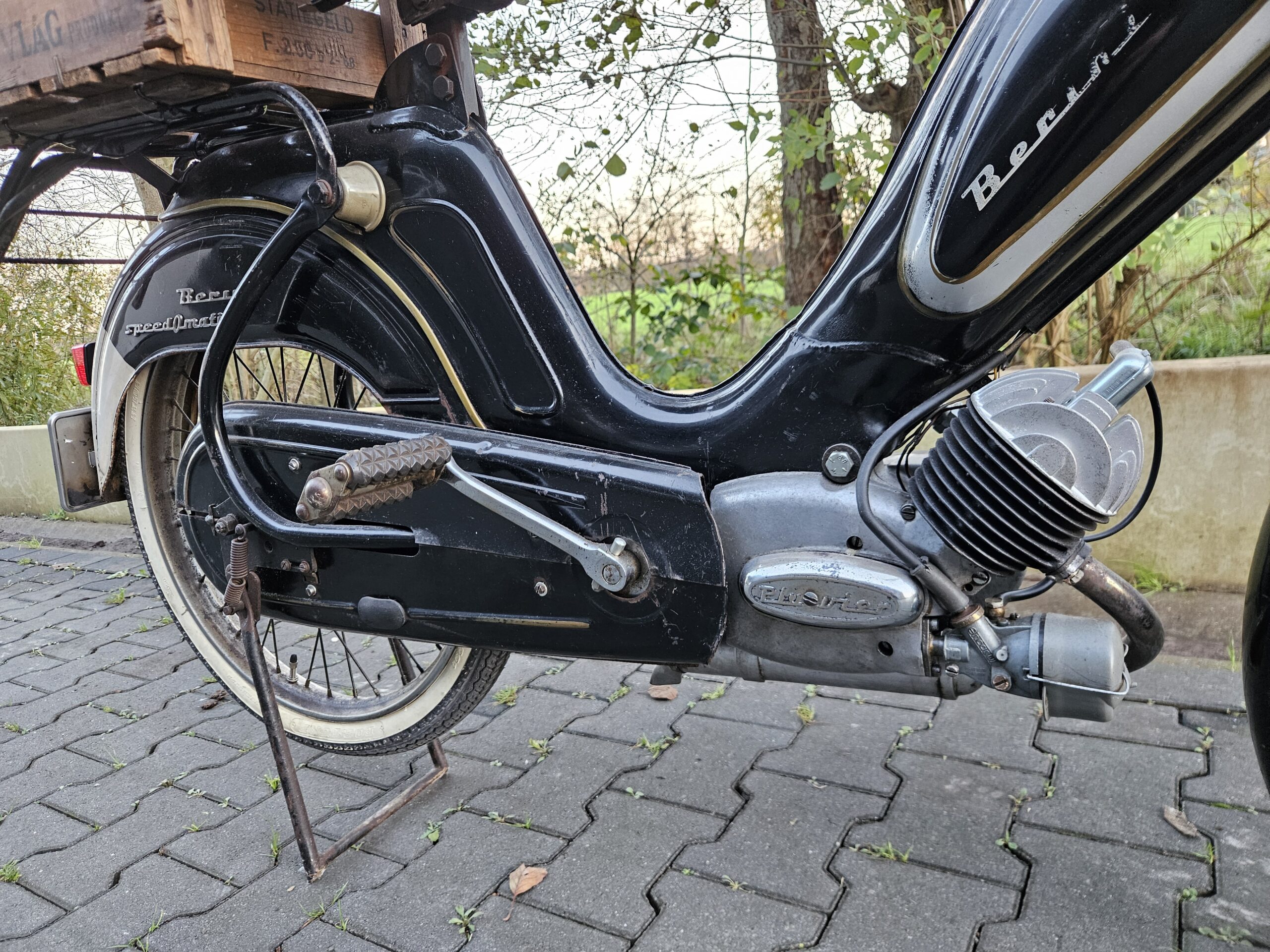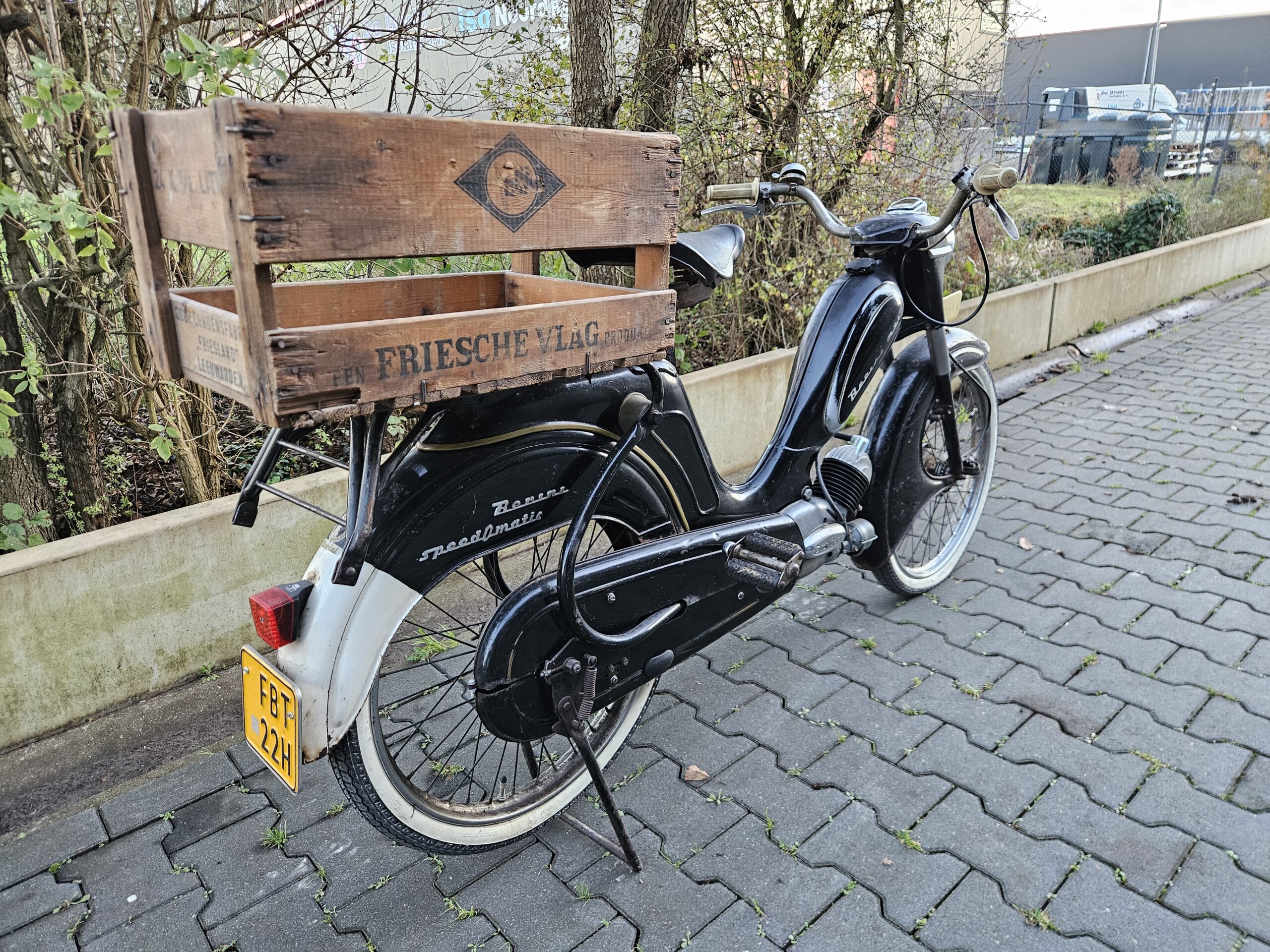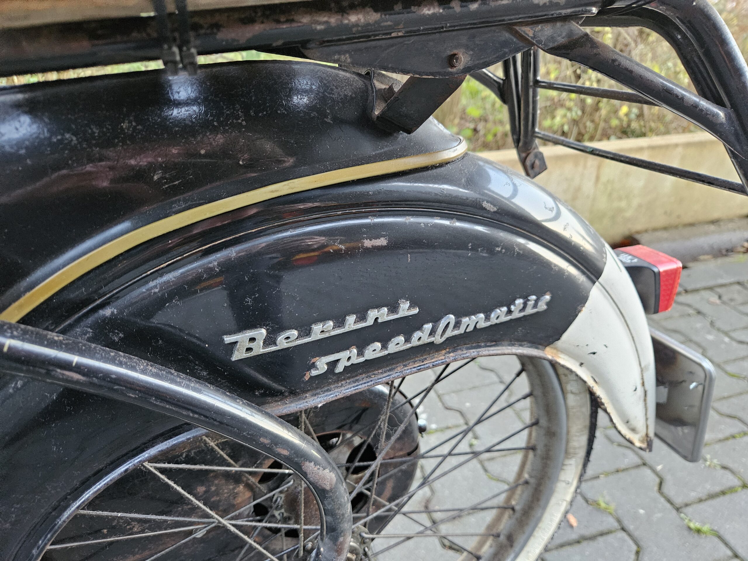 Weer eens wat anders dan een Kreidler of Zundapp, deze Berini M21 van Nederlandse bodem. Originele staat. Lopend weggezet, maar heeft jaren in een winkel als decoratie gestaan. Met kenteken.