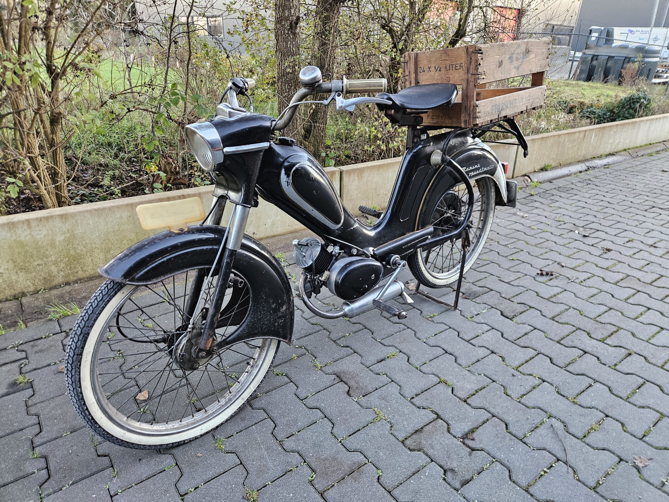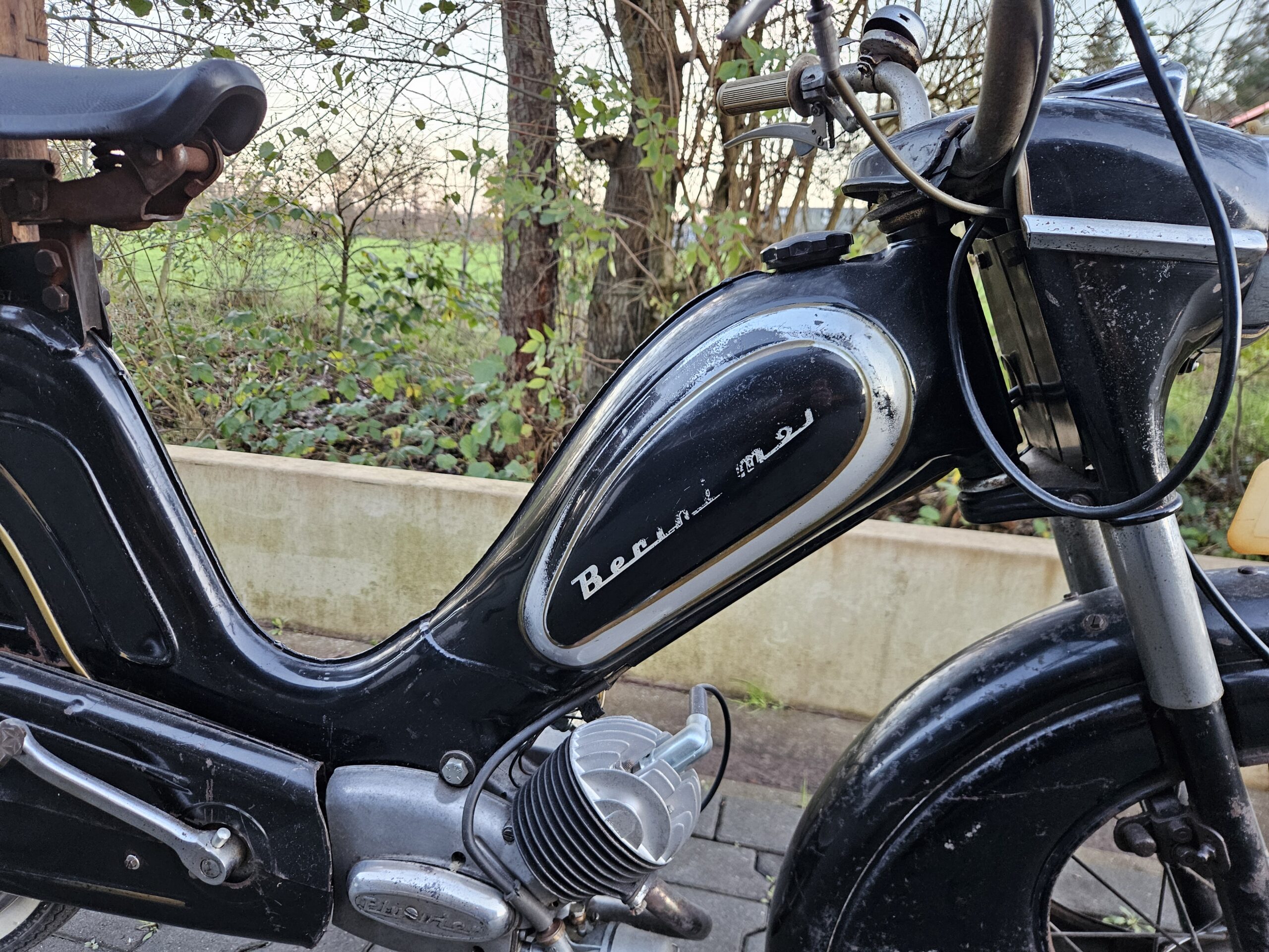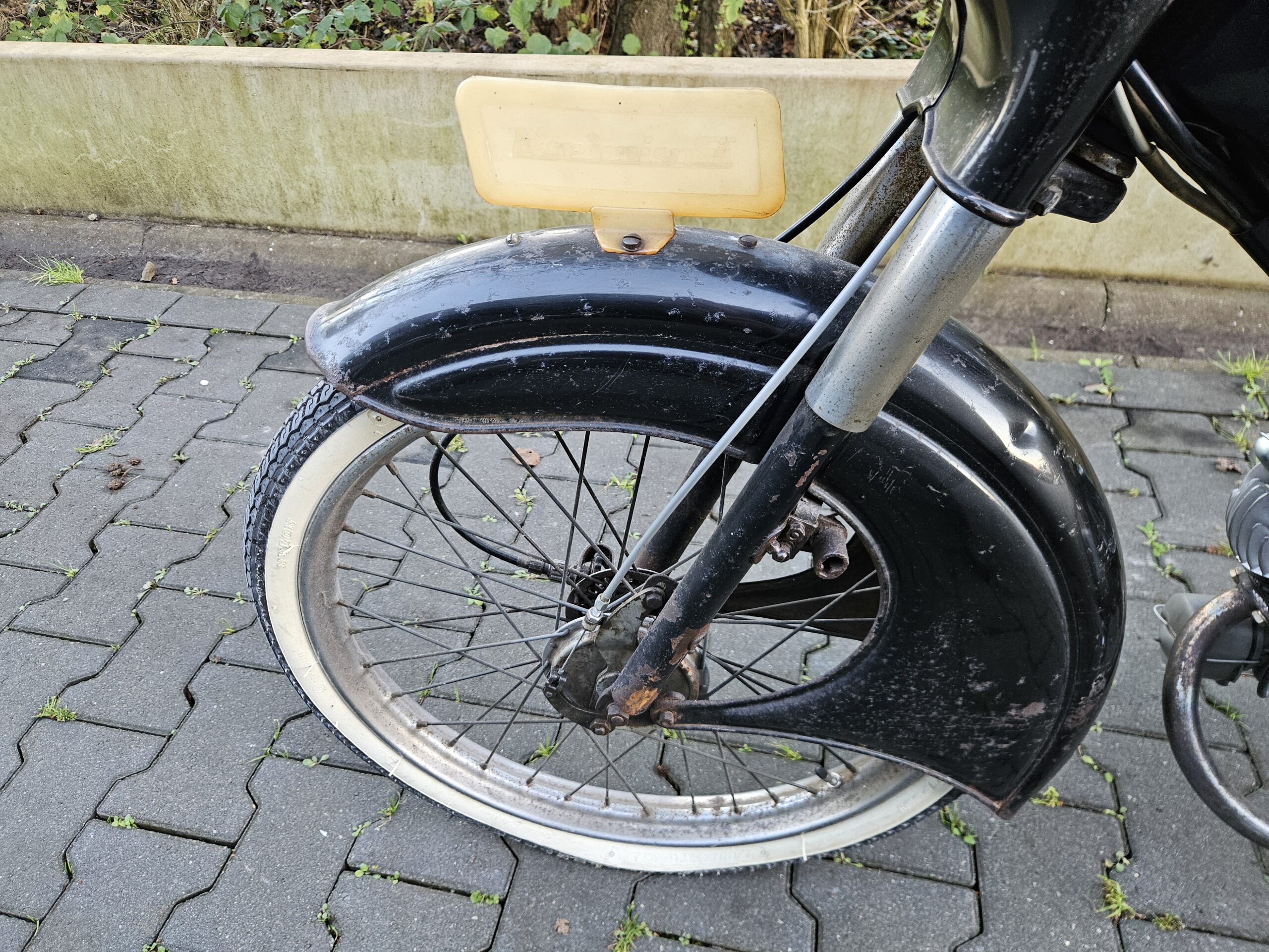 Weer eens wat anders dan een Kreidler of Zundapp, deze Berini M21 van Nederlandse bodem. Originele staat. Lopend weggezet, maar heeft jaren in een winkel als decoratie gestaan. Met kenteken.