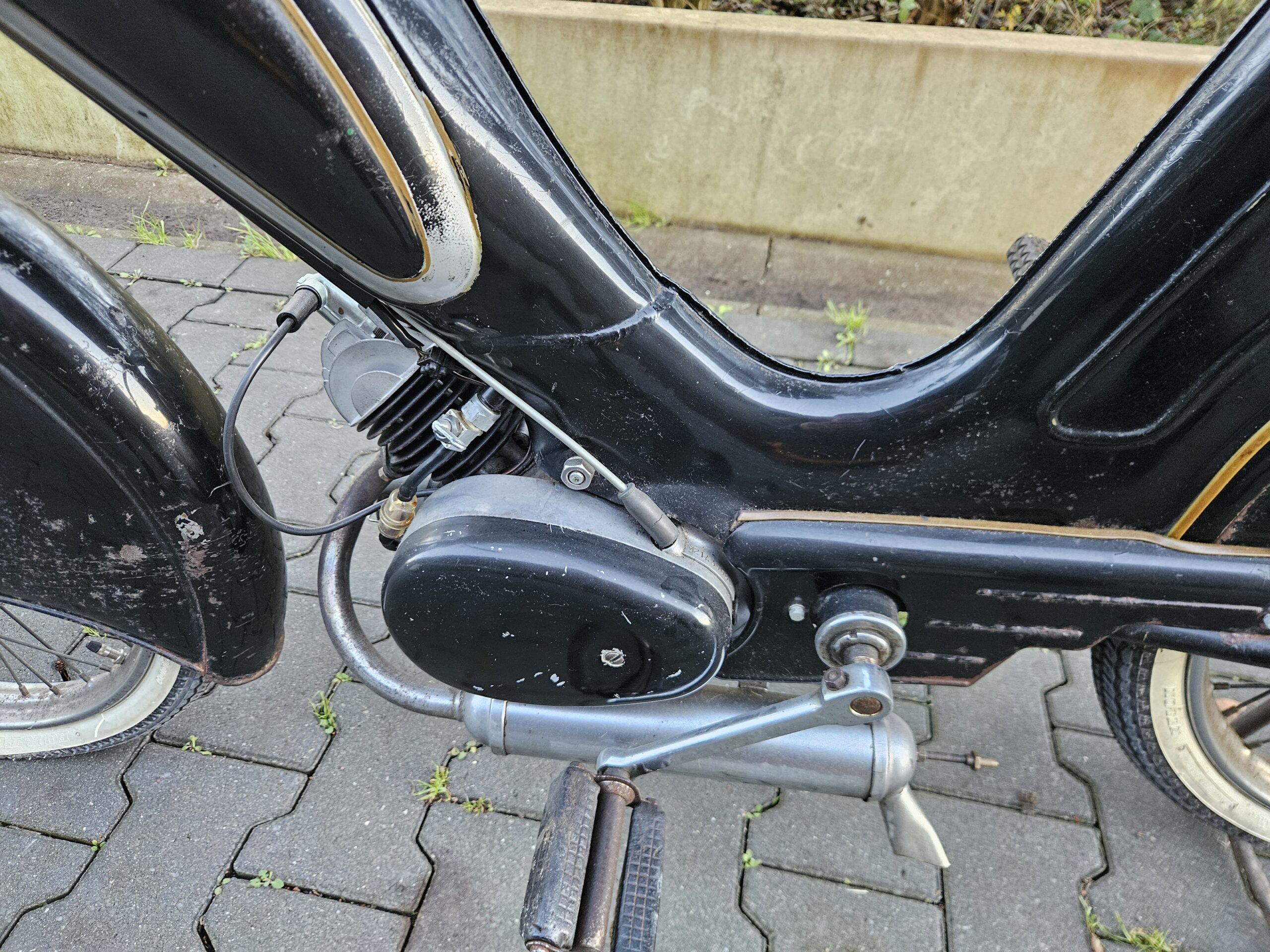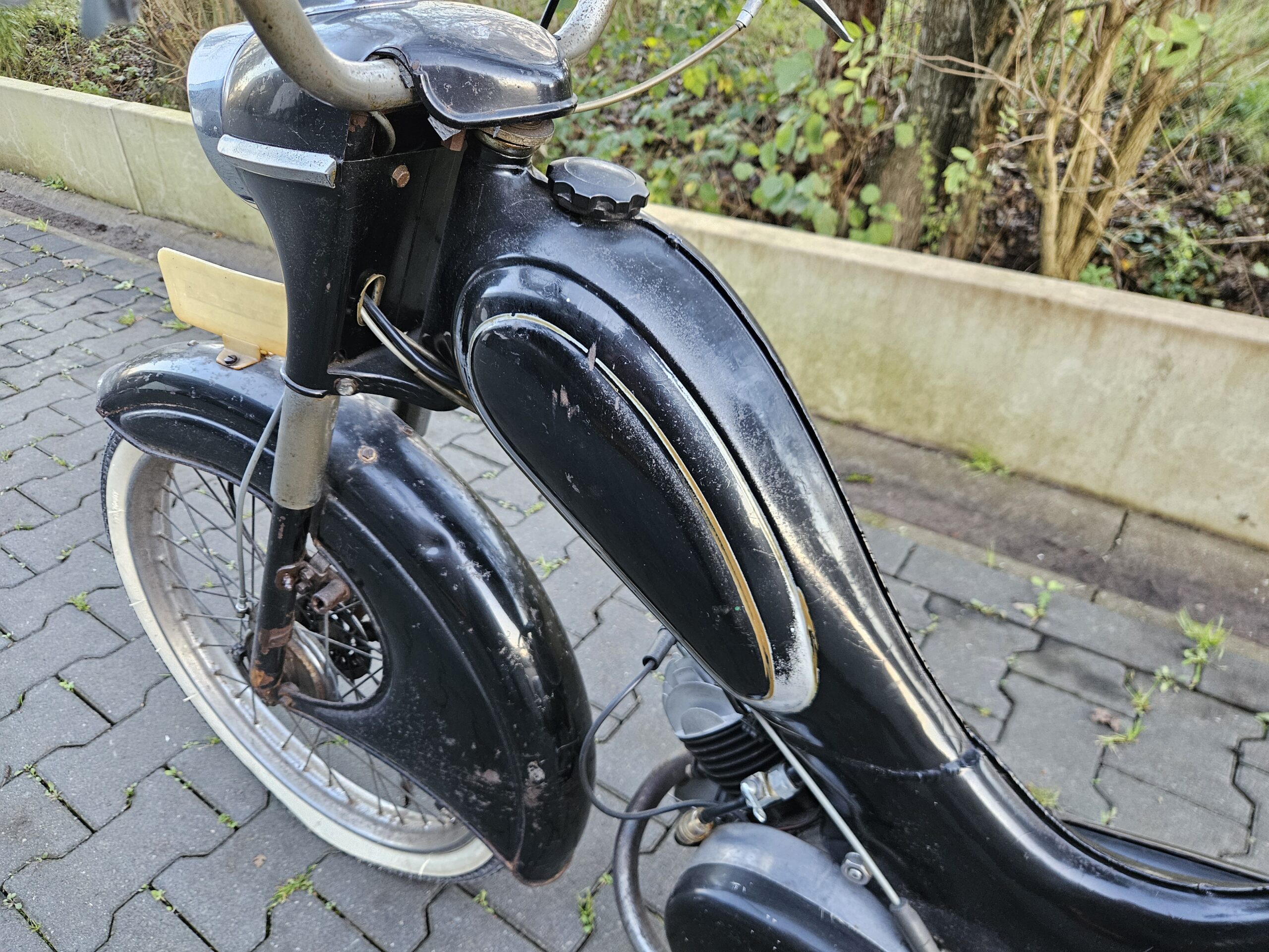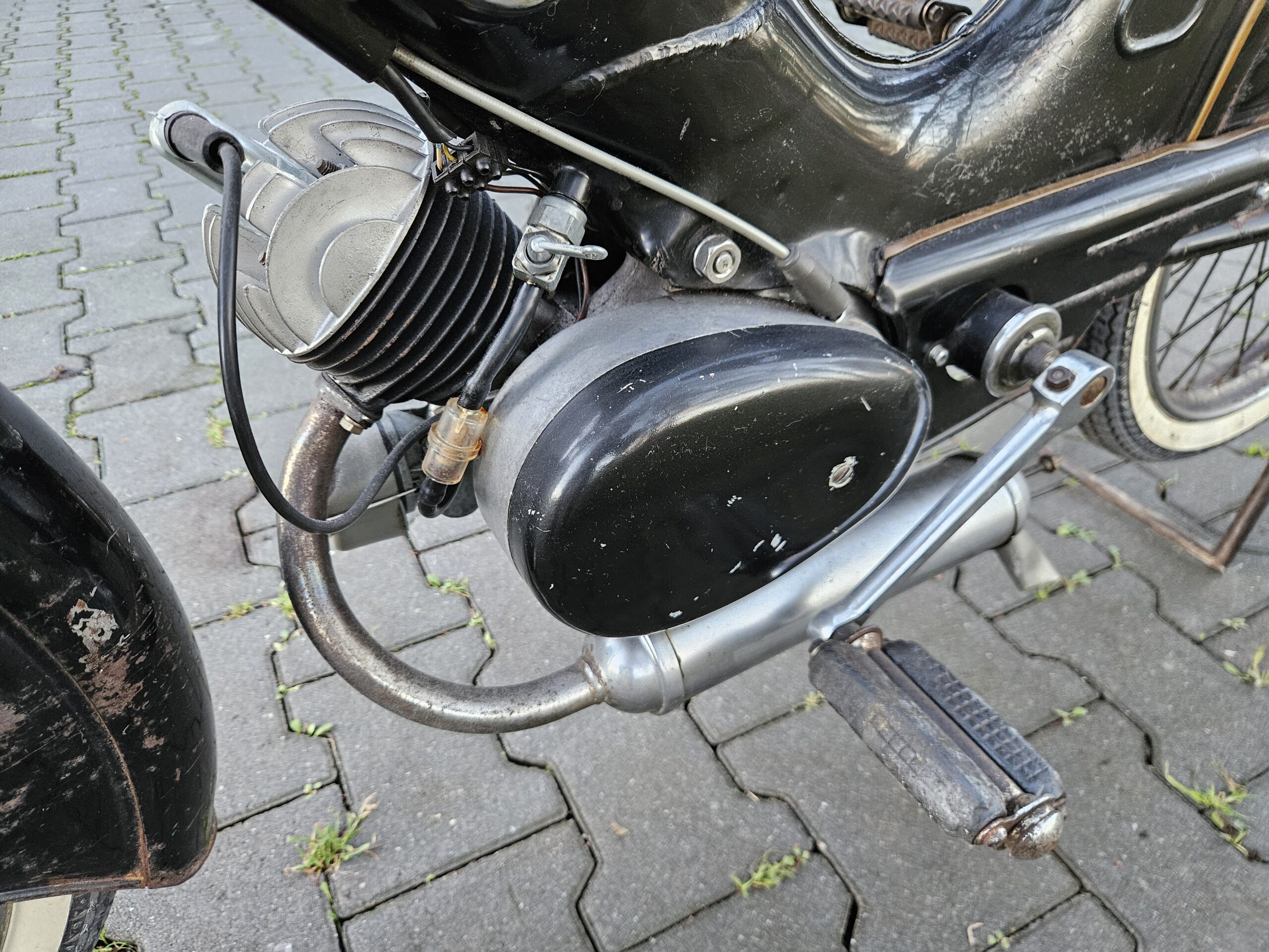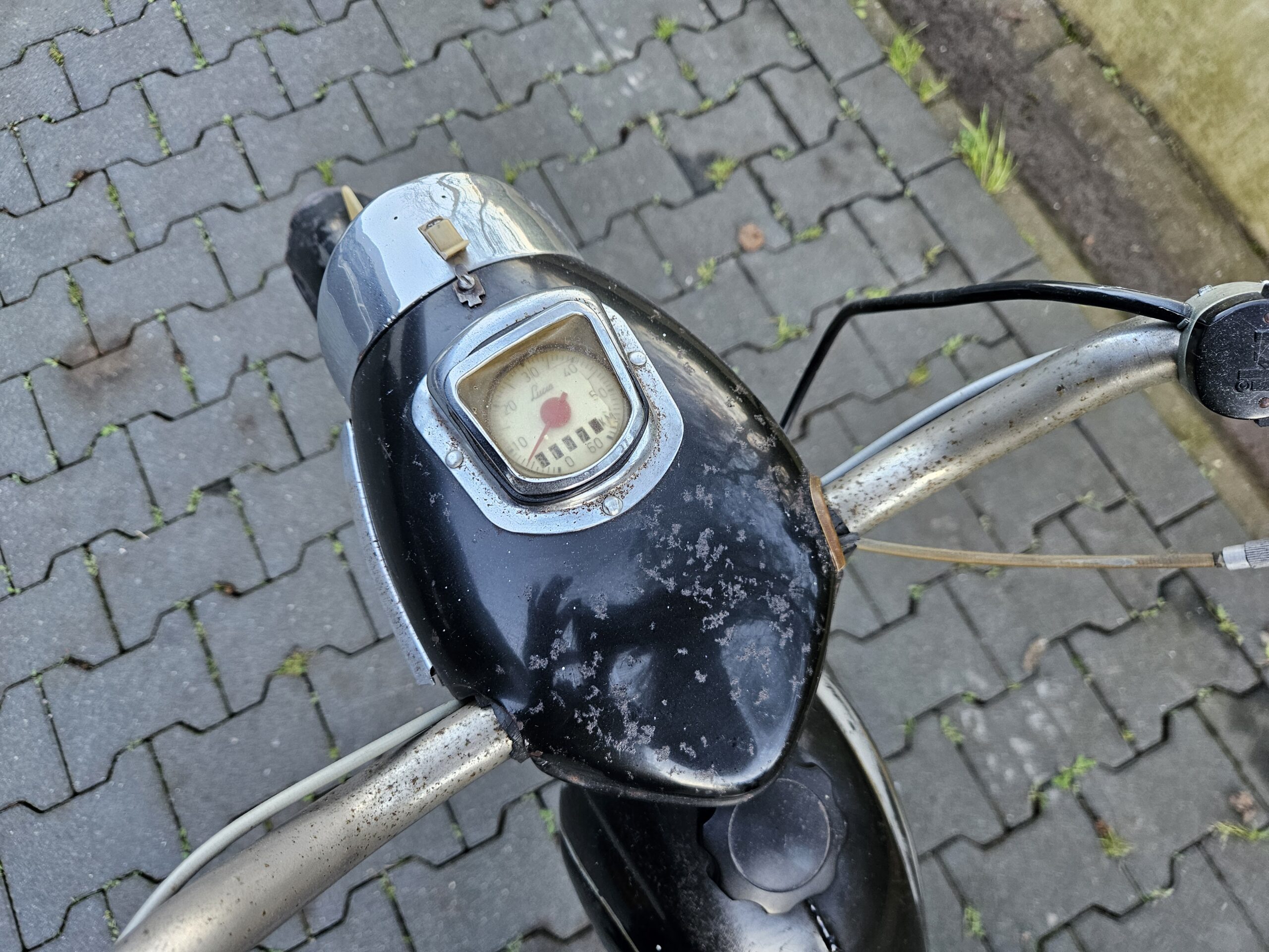 Weer eens wat anders dan een Kreidler of Zundapp, deze Berini M21 van Nederlandse bodem. Originele staat. Lopend weggezet, maar heeft jaren in een winkel als decoratie gestaan. Met kenteken.