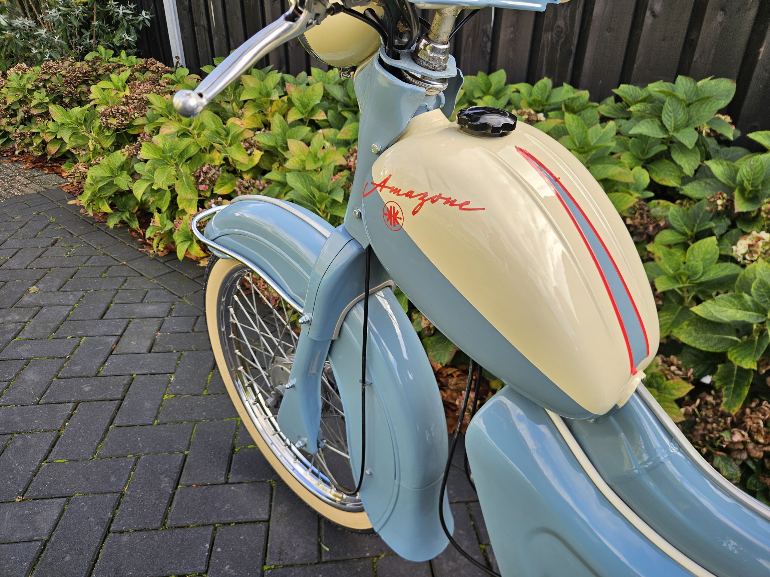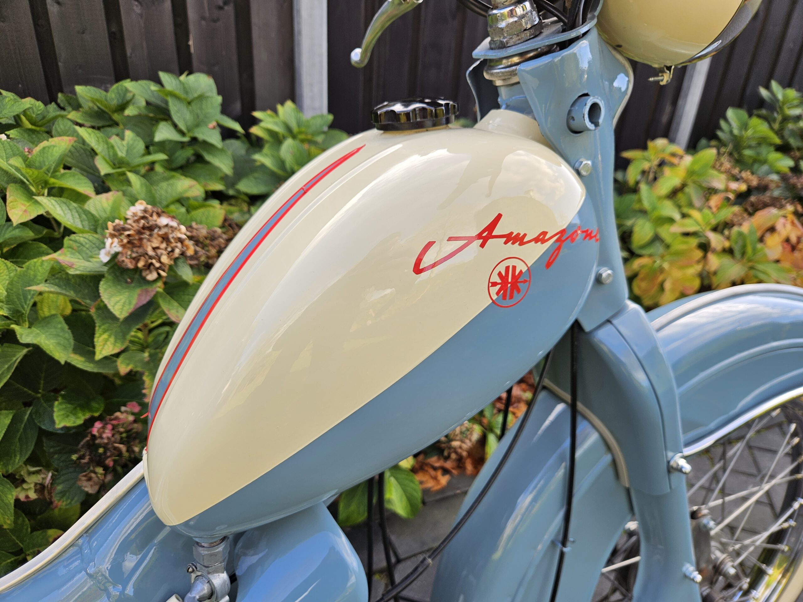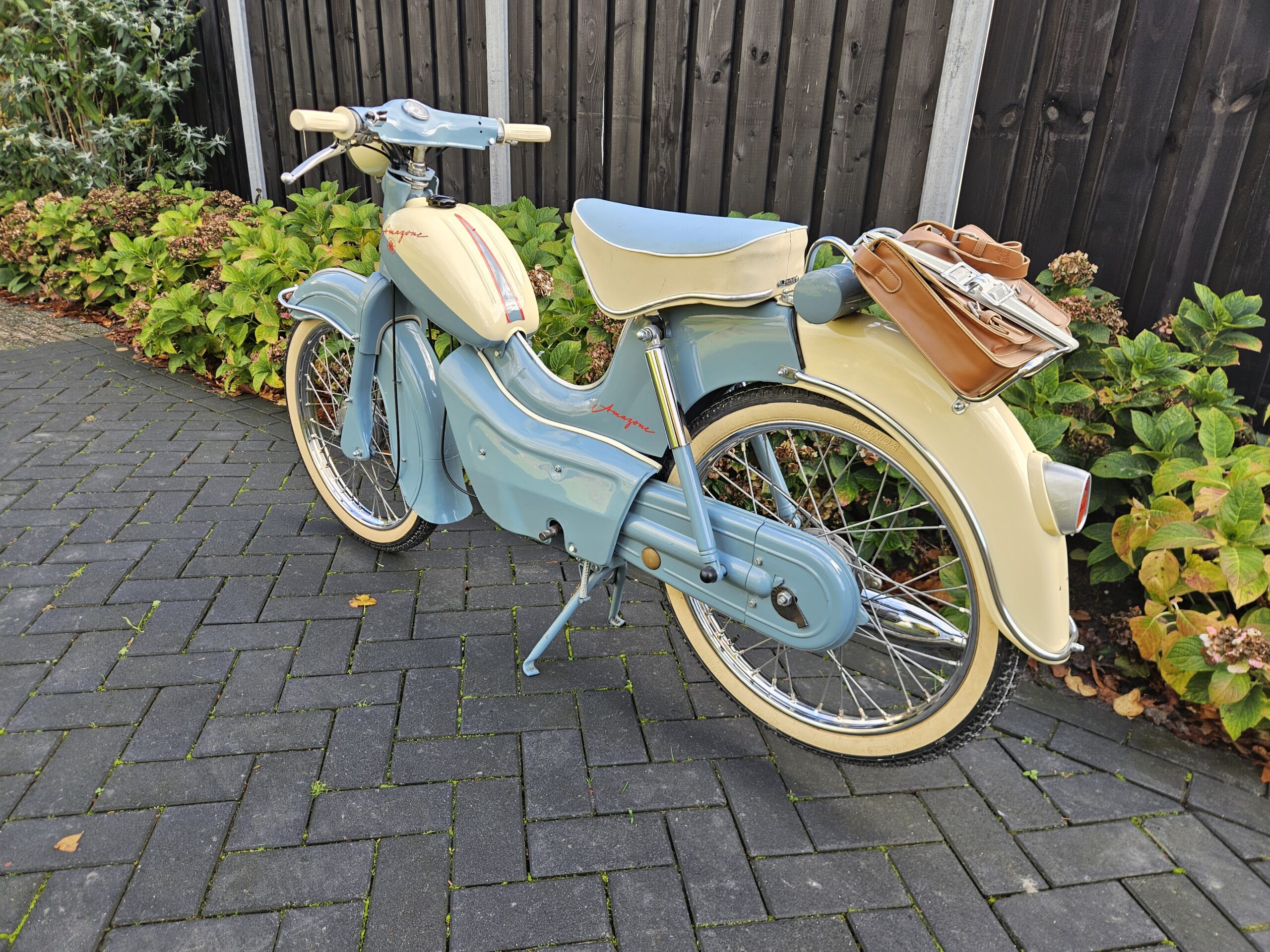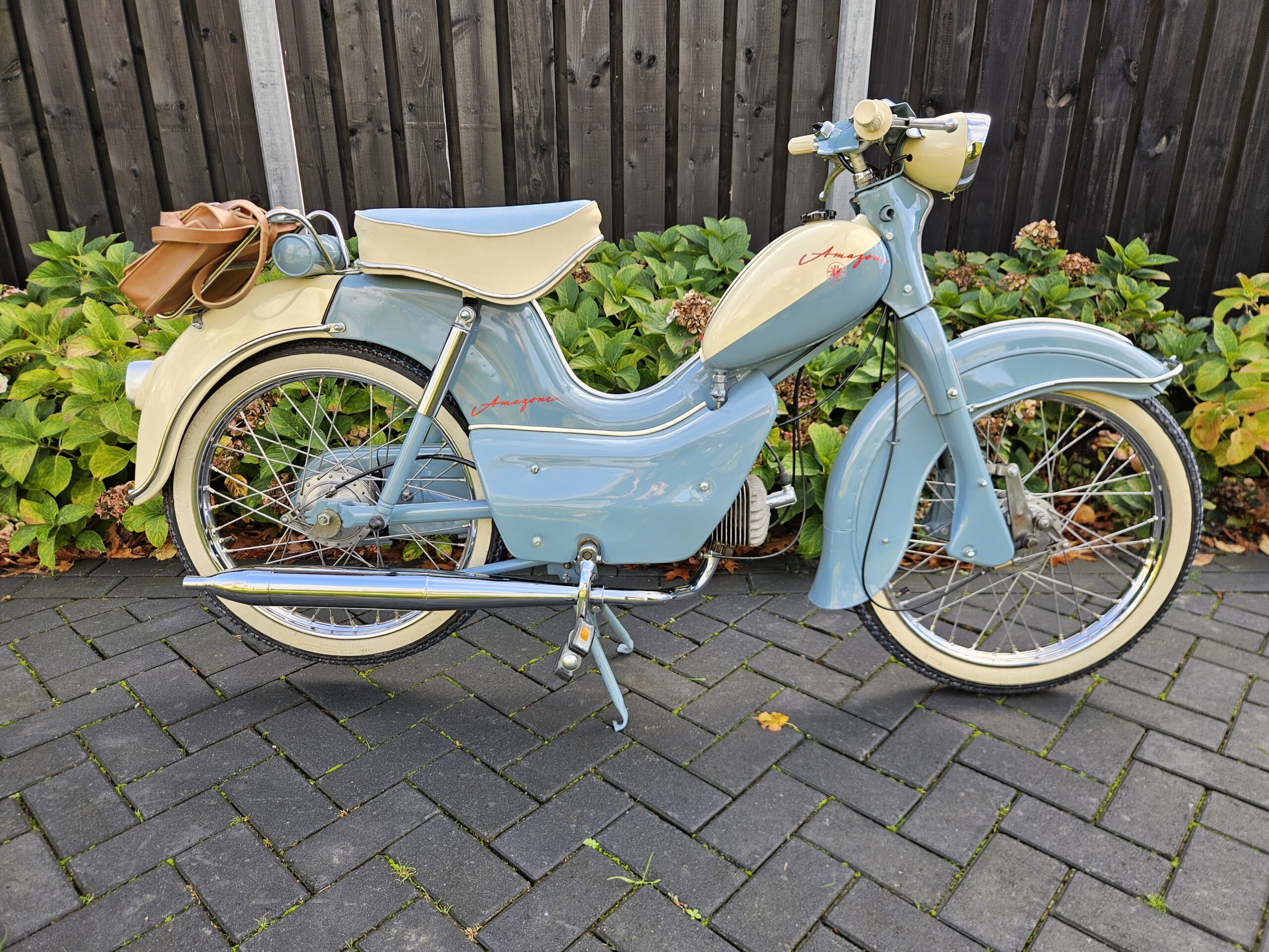 Iedereen kent de Volvo Amazone, maar wist u dat Volvo deze naam niet mocht voeren in Duitsland vanwege deze brommer? Deze Kreidler Amazone is één van de eerste Kreidlers met het bekende blokje met liggende cilinder en heeft daarom zijn plek in de geschiedenis van het merk verdiend. Deze brommer staat in onze privéverzameling.