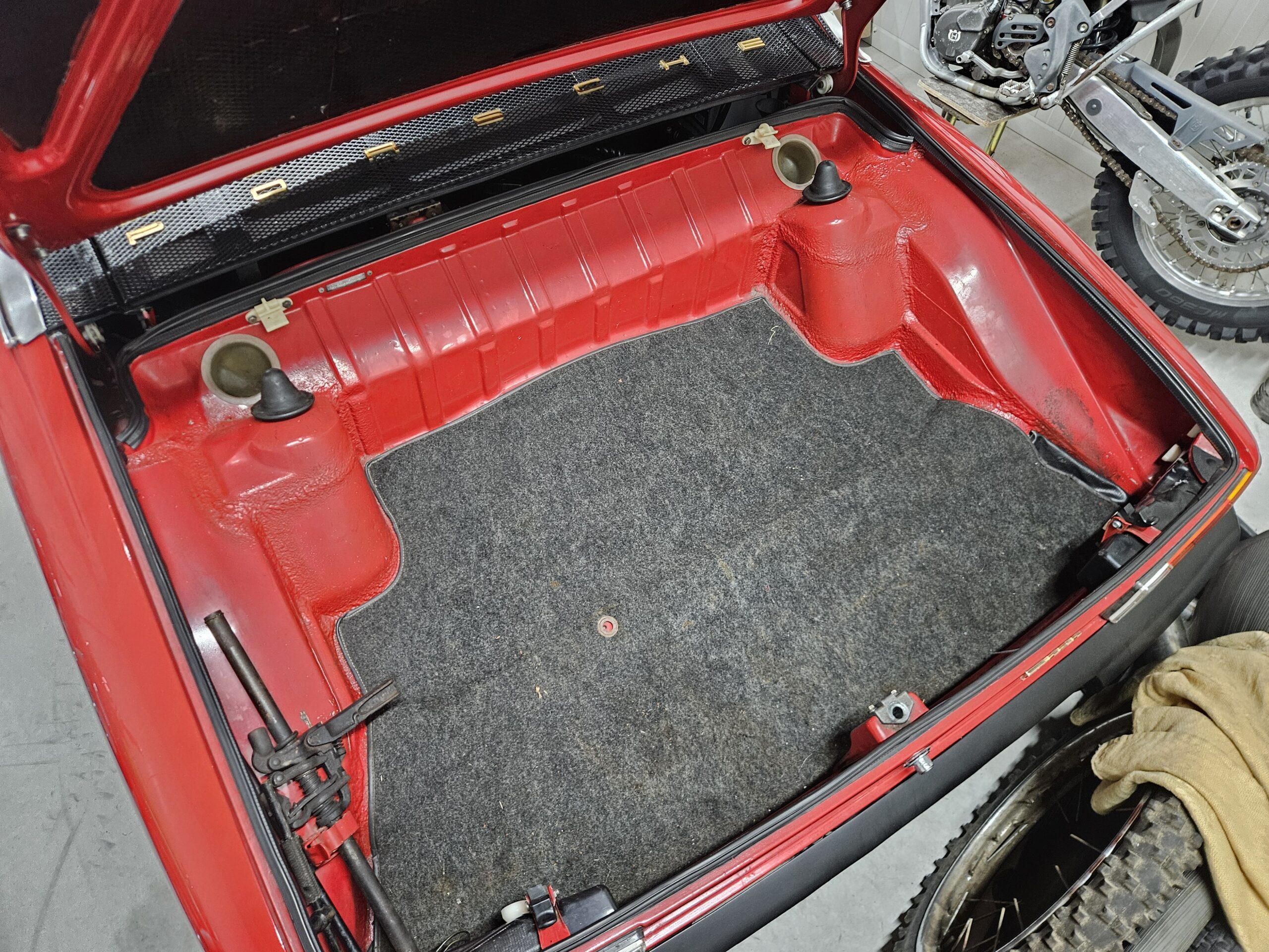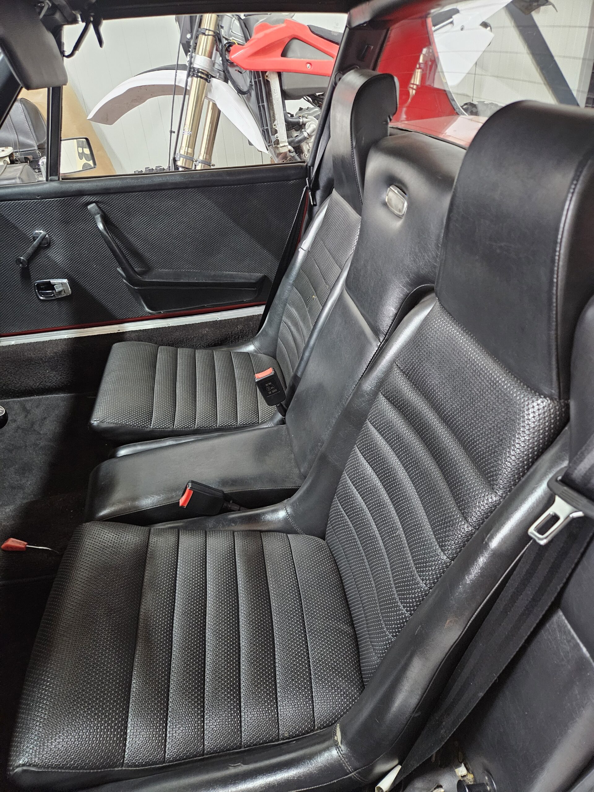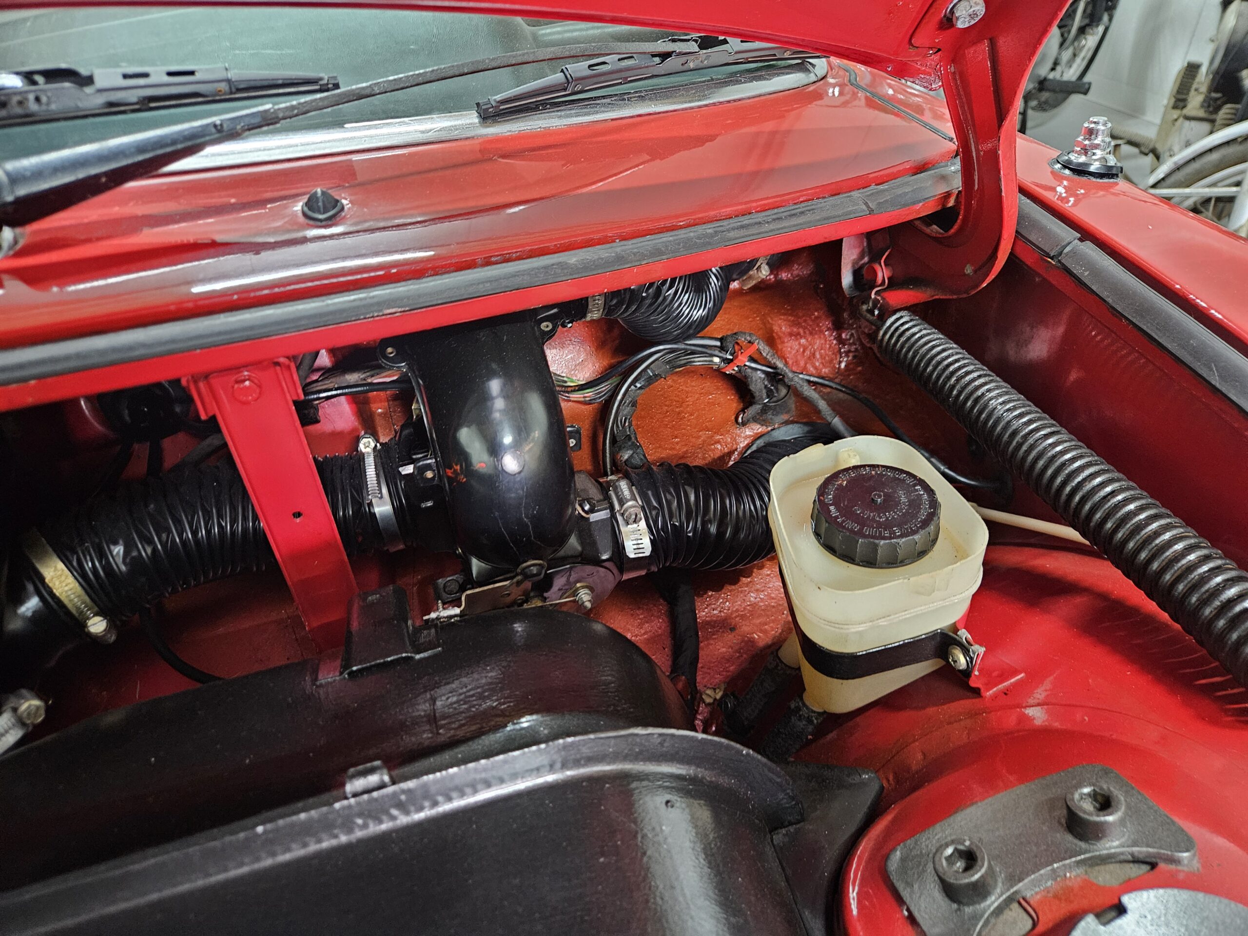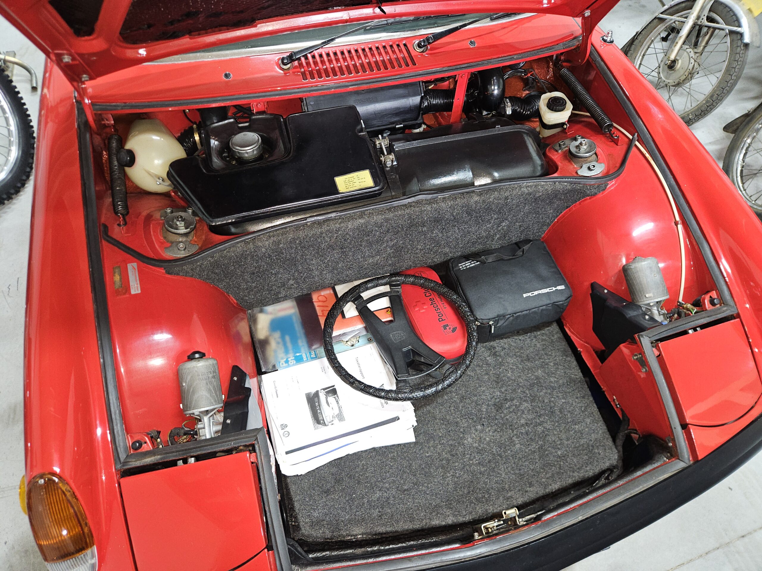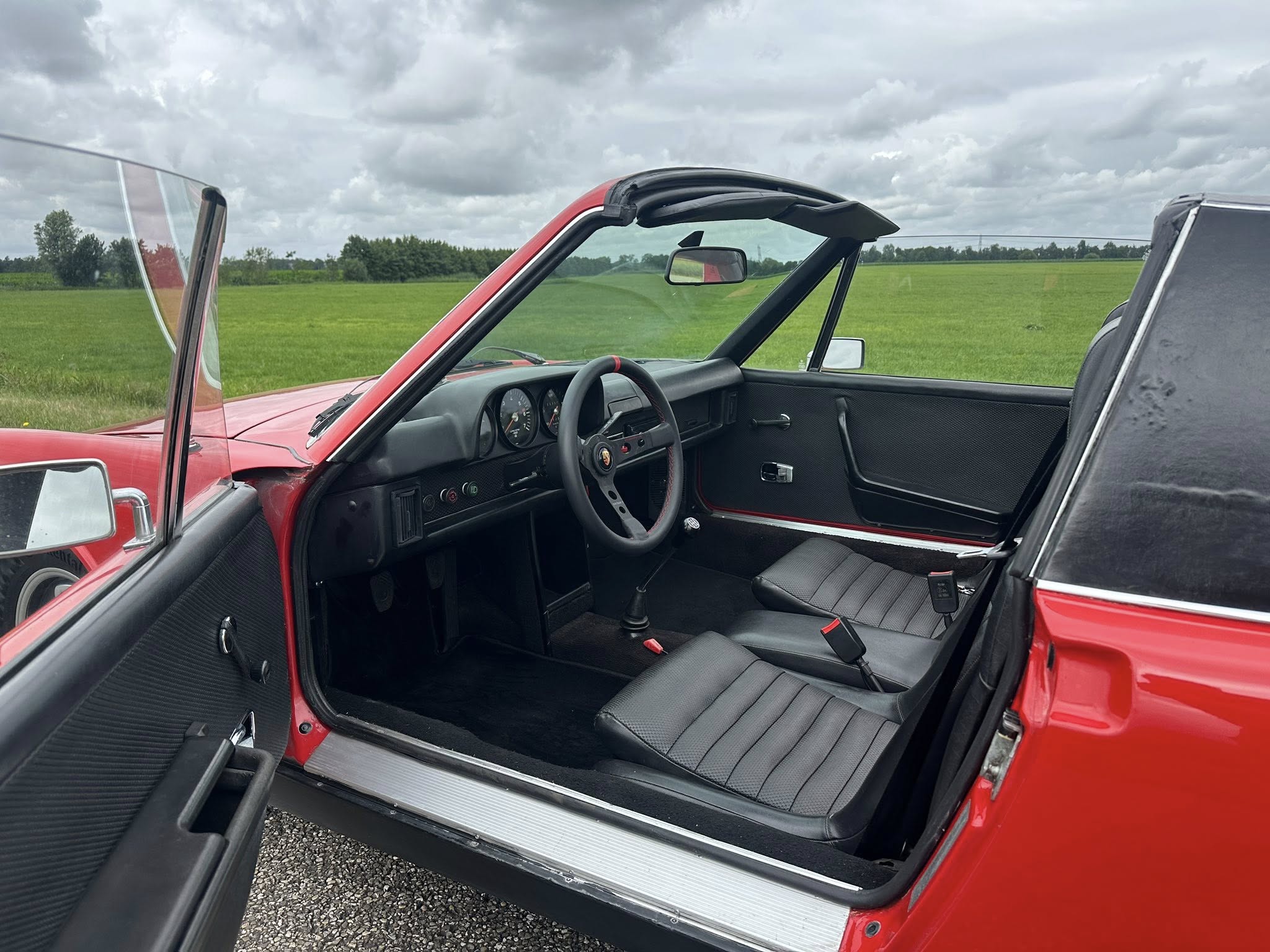 Het interieur is netjes (kleine scheur in passagiersstoel) en voorzien van een MOMO Porsche-stuurwiel. Het originele vlinderstuur is eveneens aanwezig. De mijlenteller is vervangen door een kilometerteller.