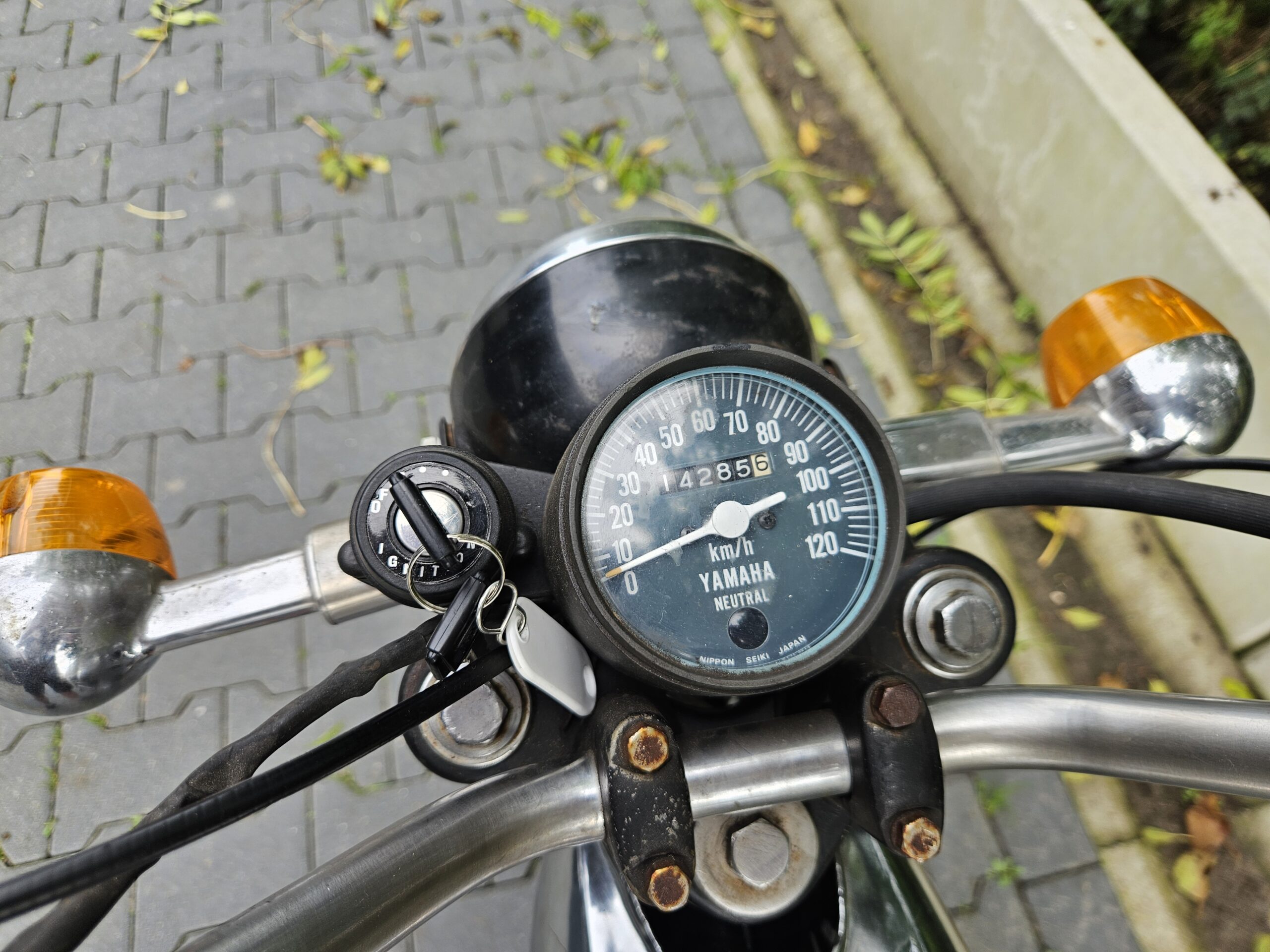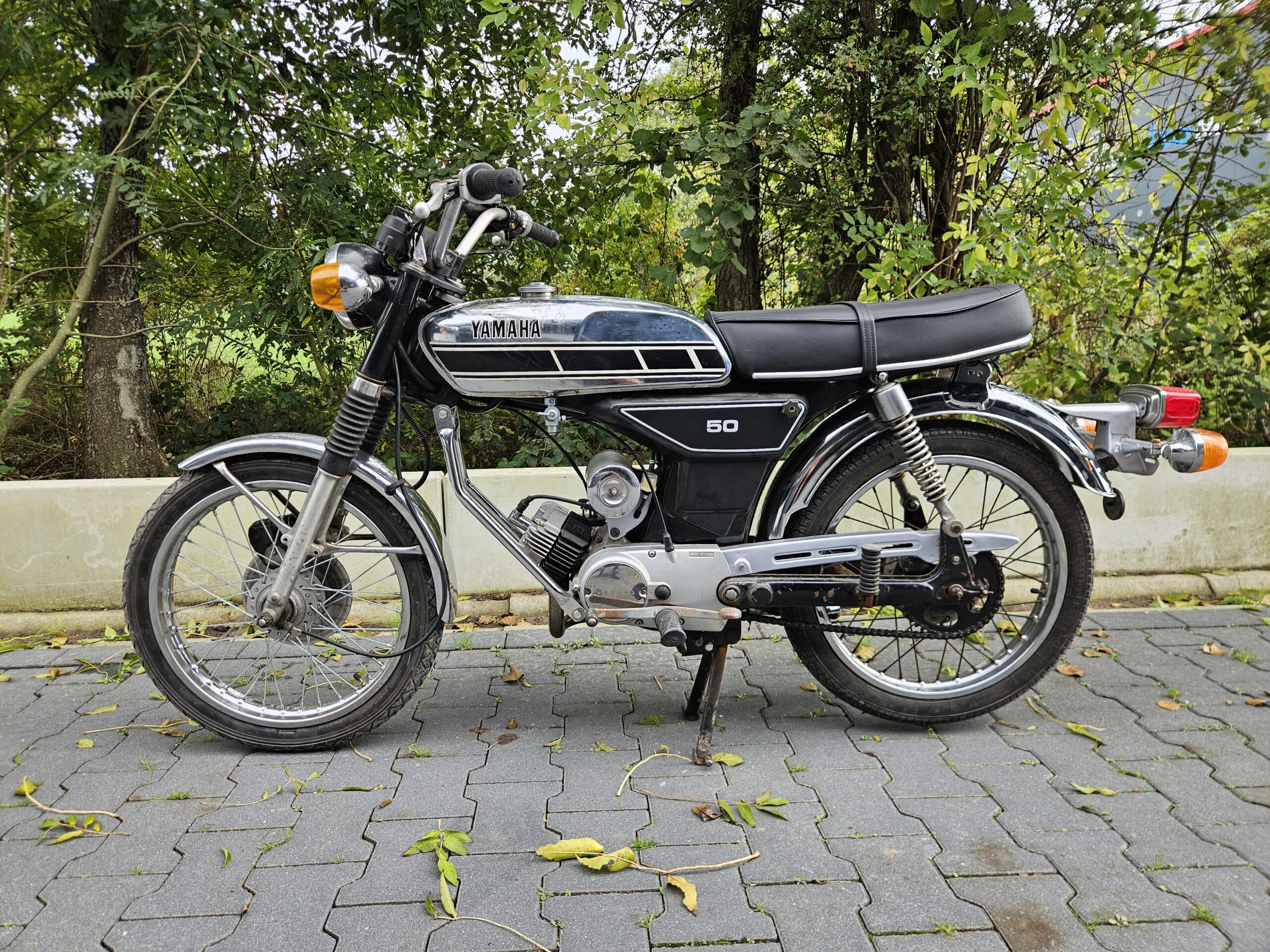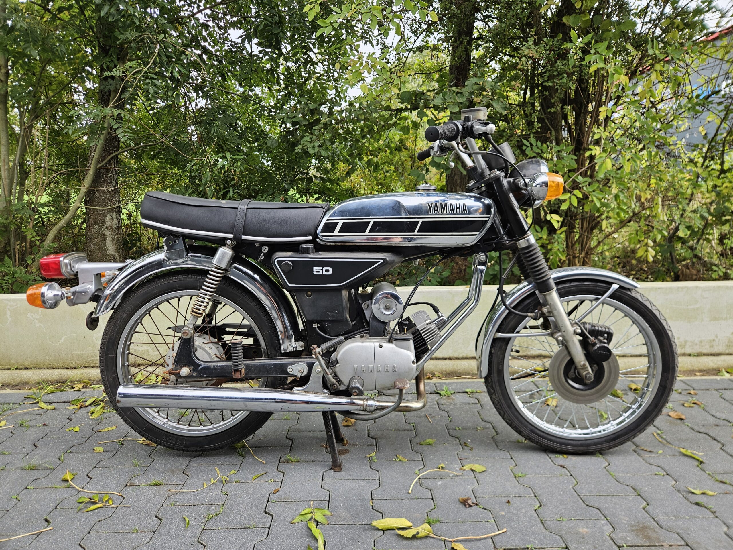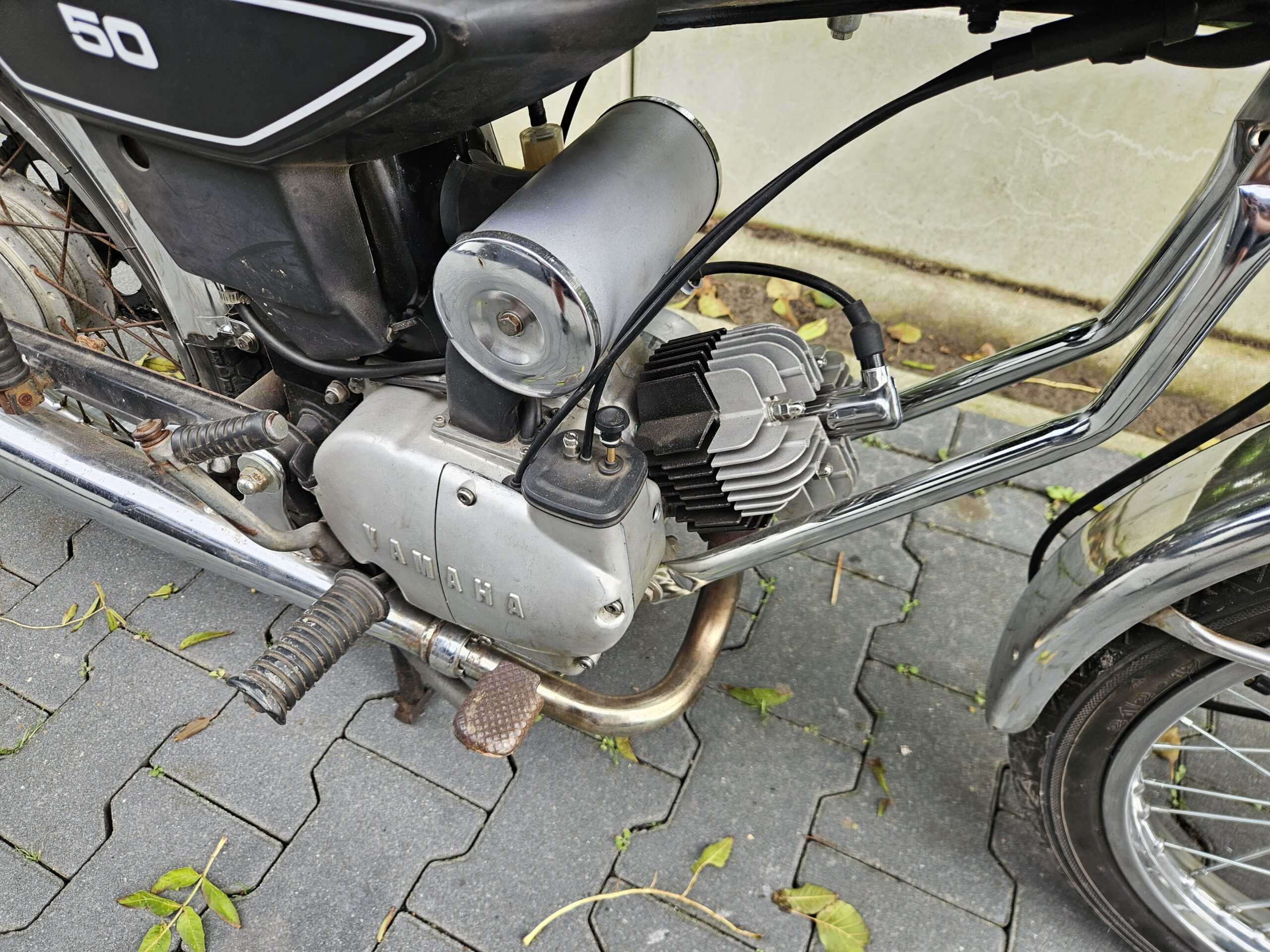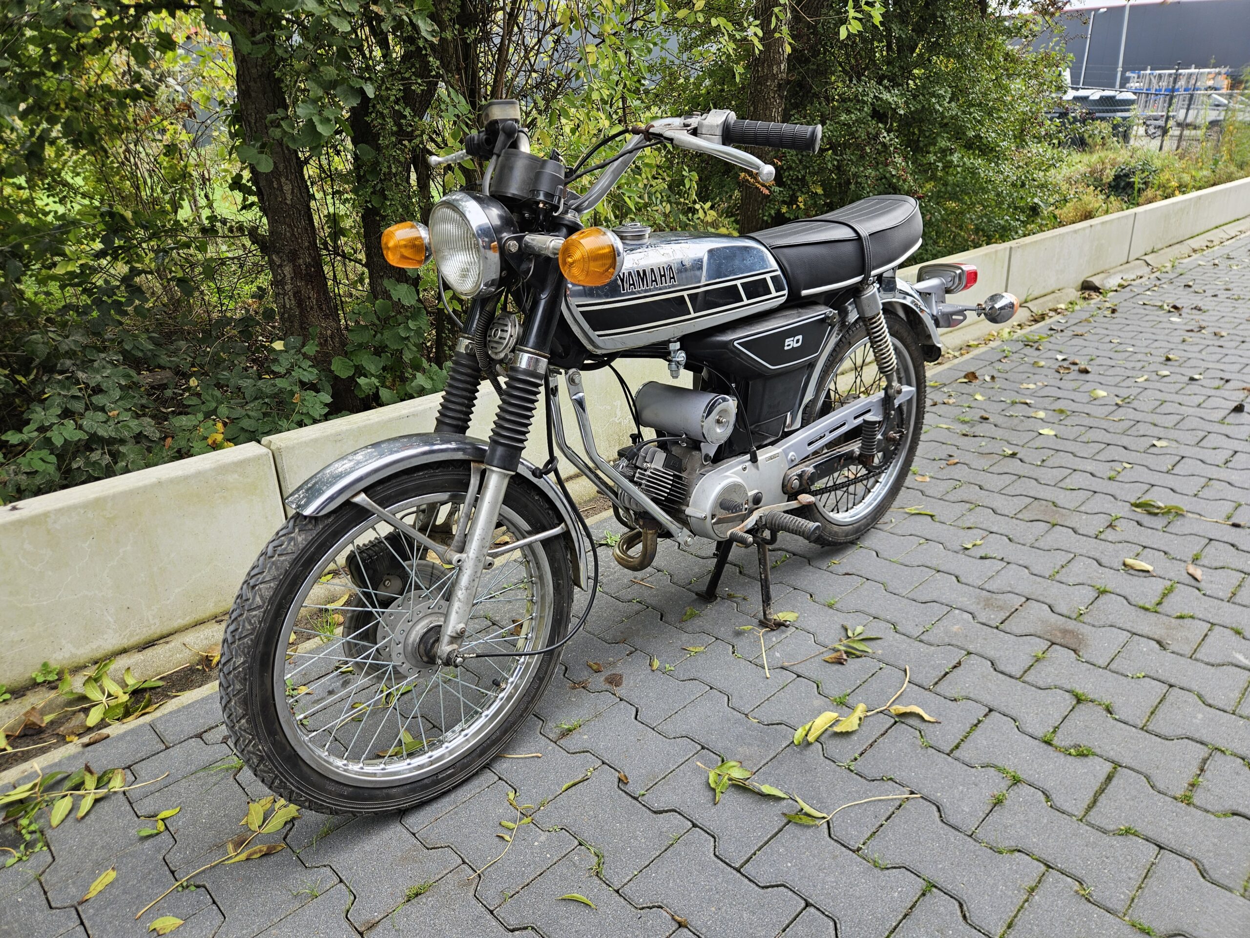 Mooie echte Yamaha FS-1 (468) met schijfrem en chrome tank. Matching nummers. Loopt en rijdt heel goed. De blanke lak op de tank laat los, deze kan eenvoudig verwijderd worden. Mooi overzichtelijk project of gewoon zo lekker touren. Duitse papieren zijn erbij, maar nog geen NL-kenteken.