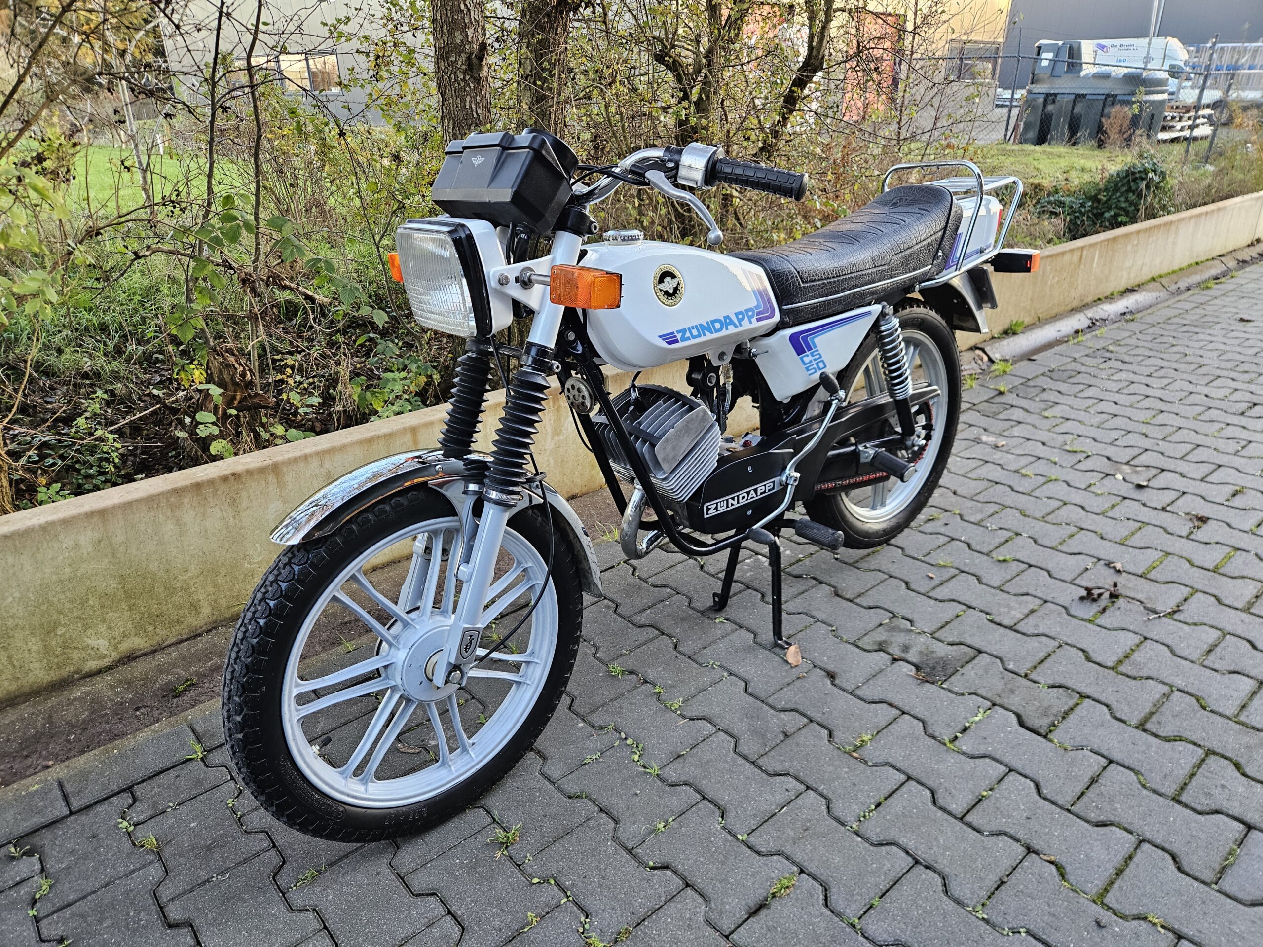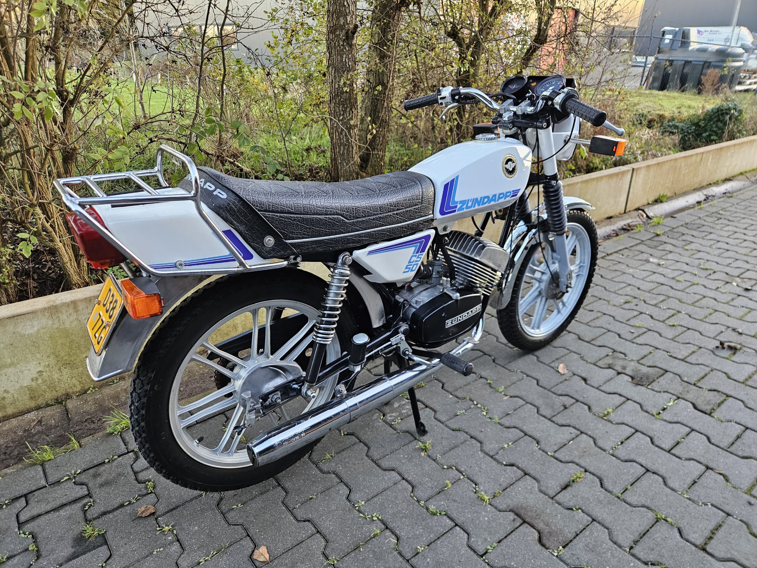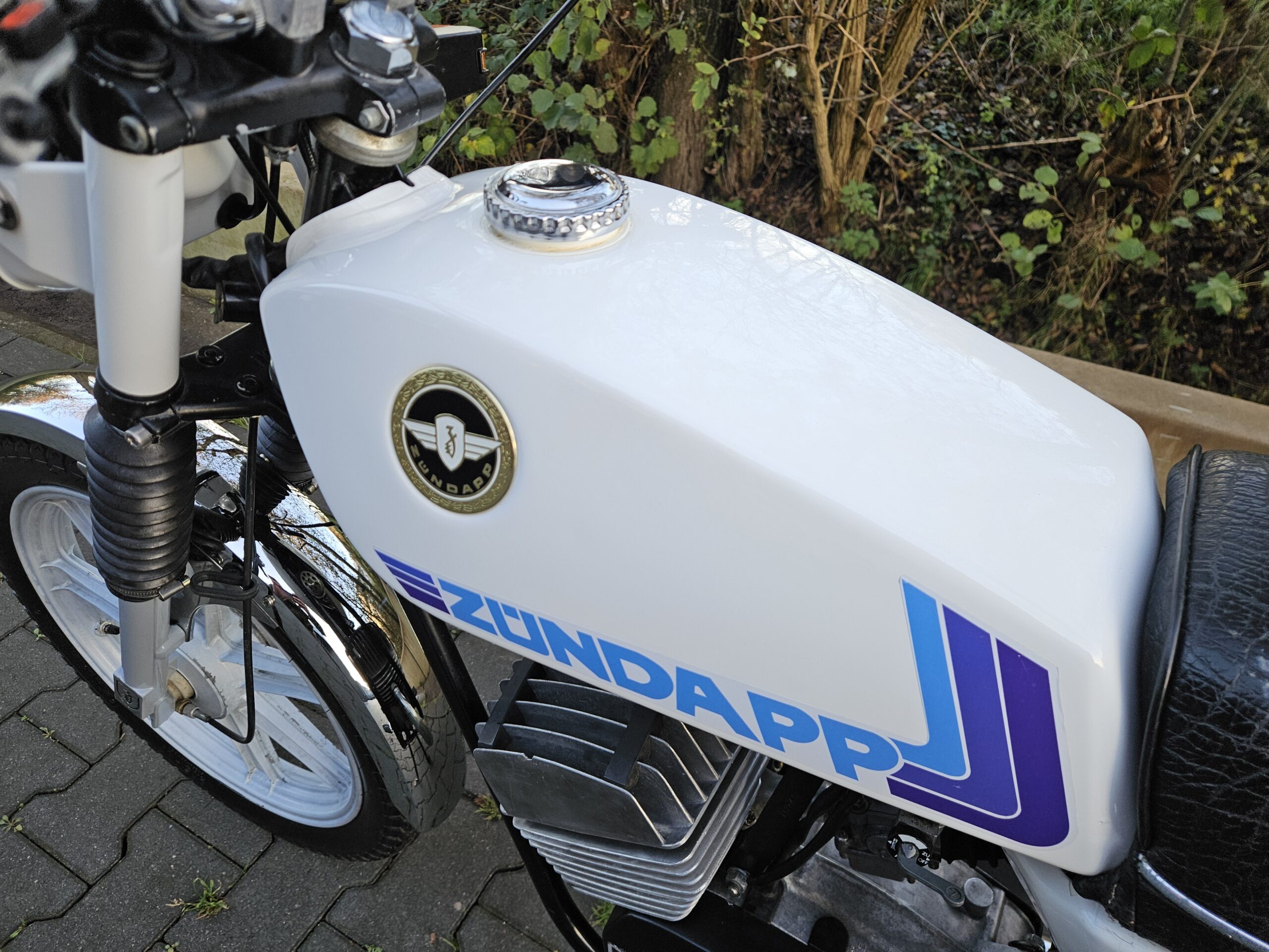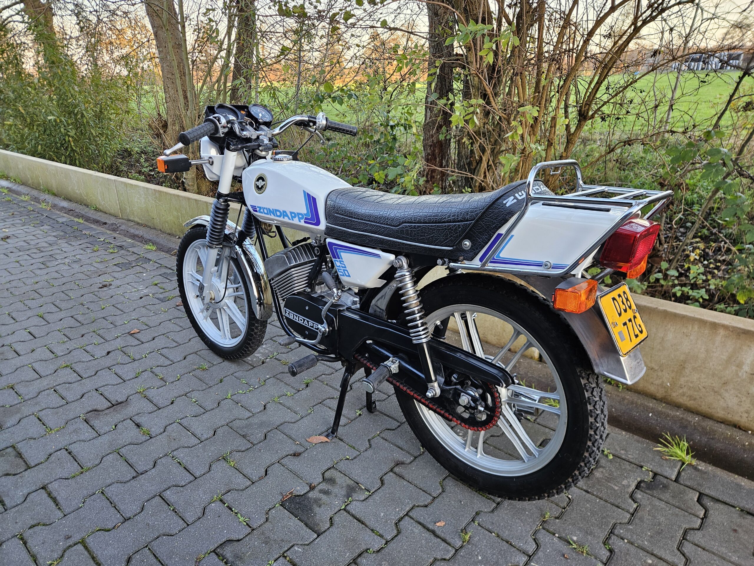 Zundapp 448 Sprinter. Mooi frisse witte lak. Voorzien van 4 bak met elektronische ontsteking. Loopt, rijdt, remt en schakelt goed.