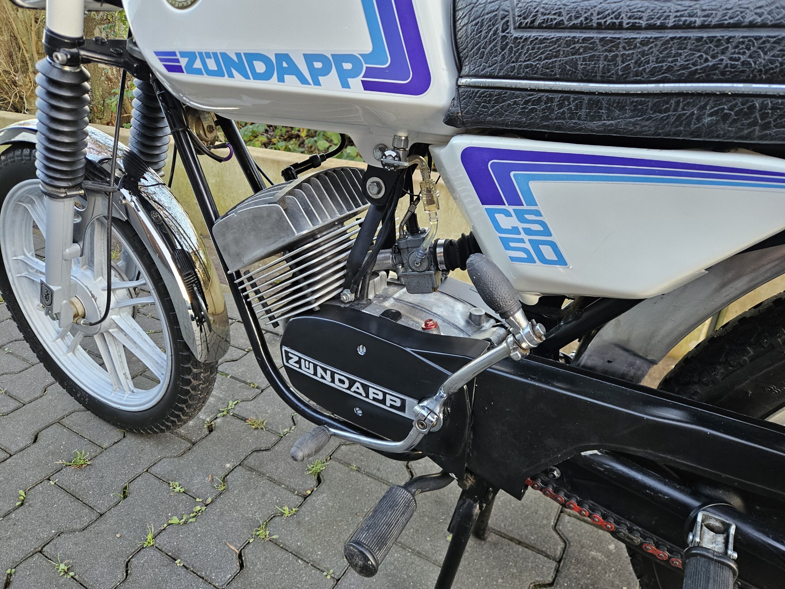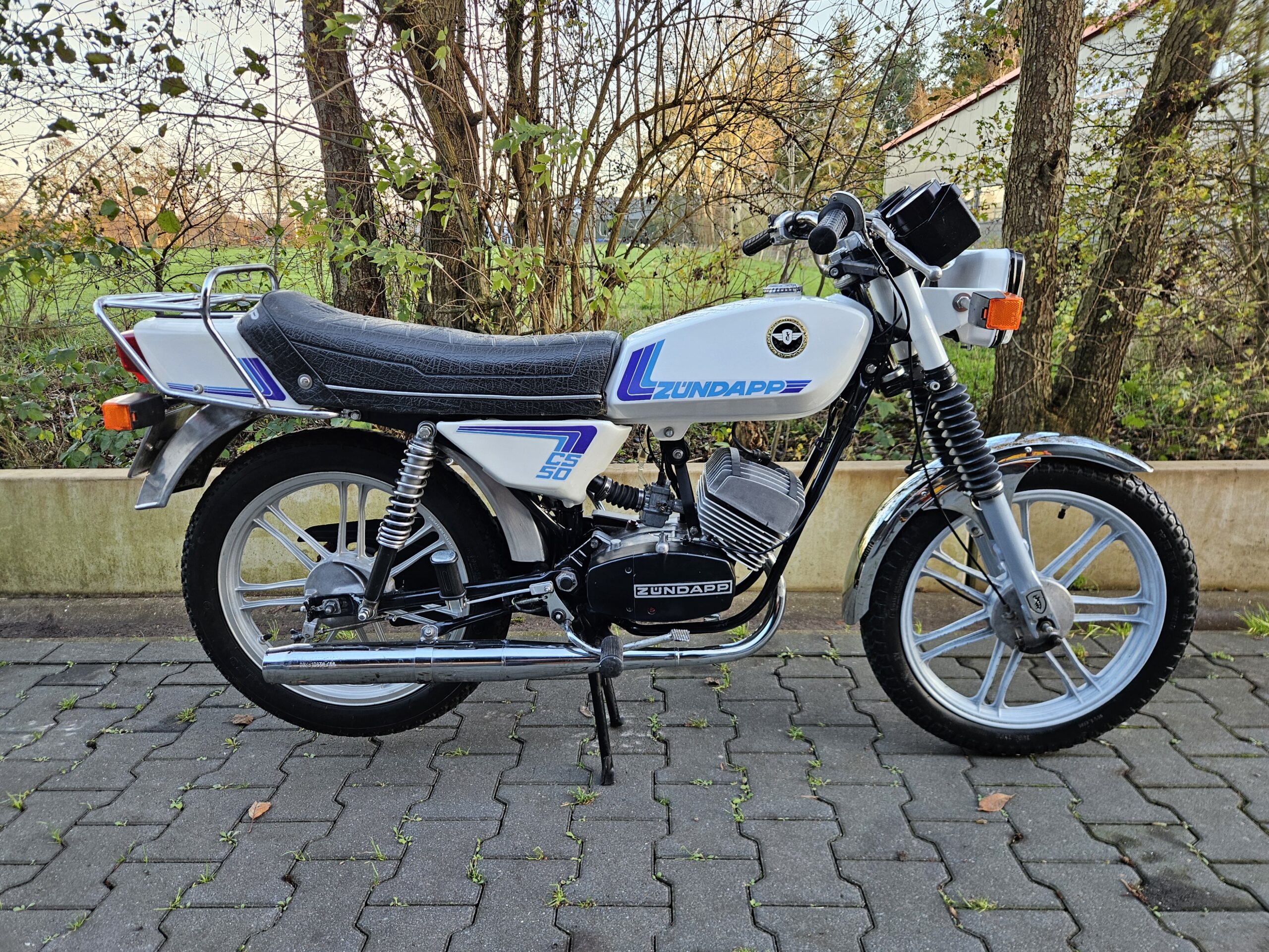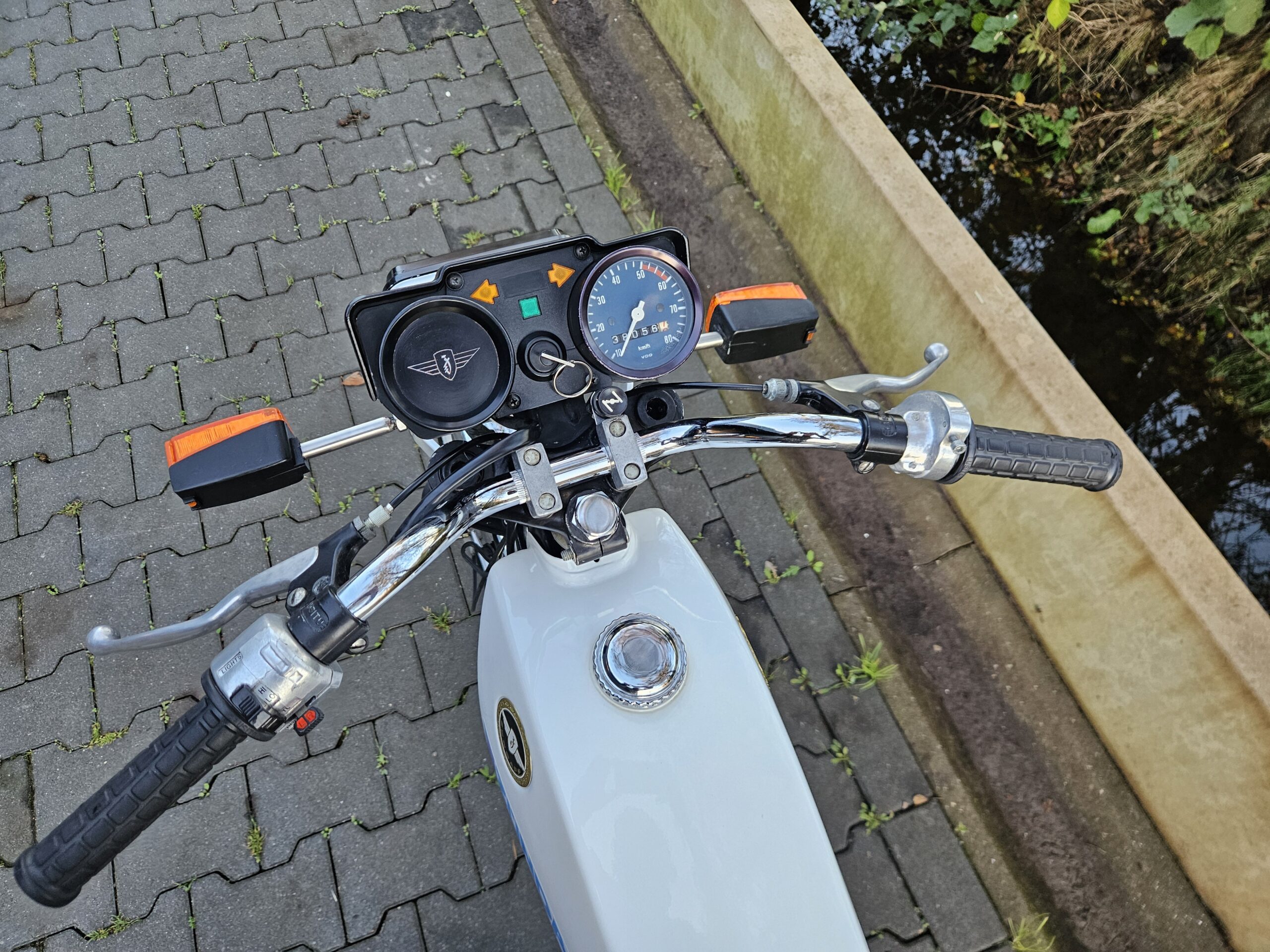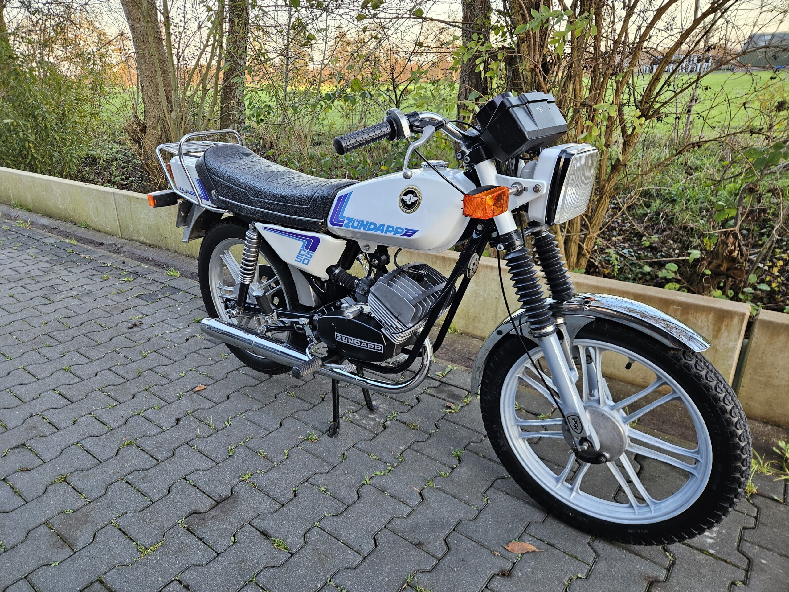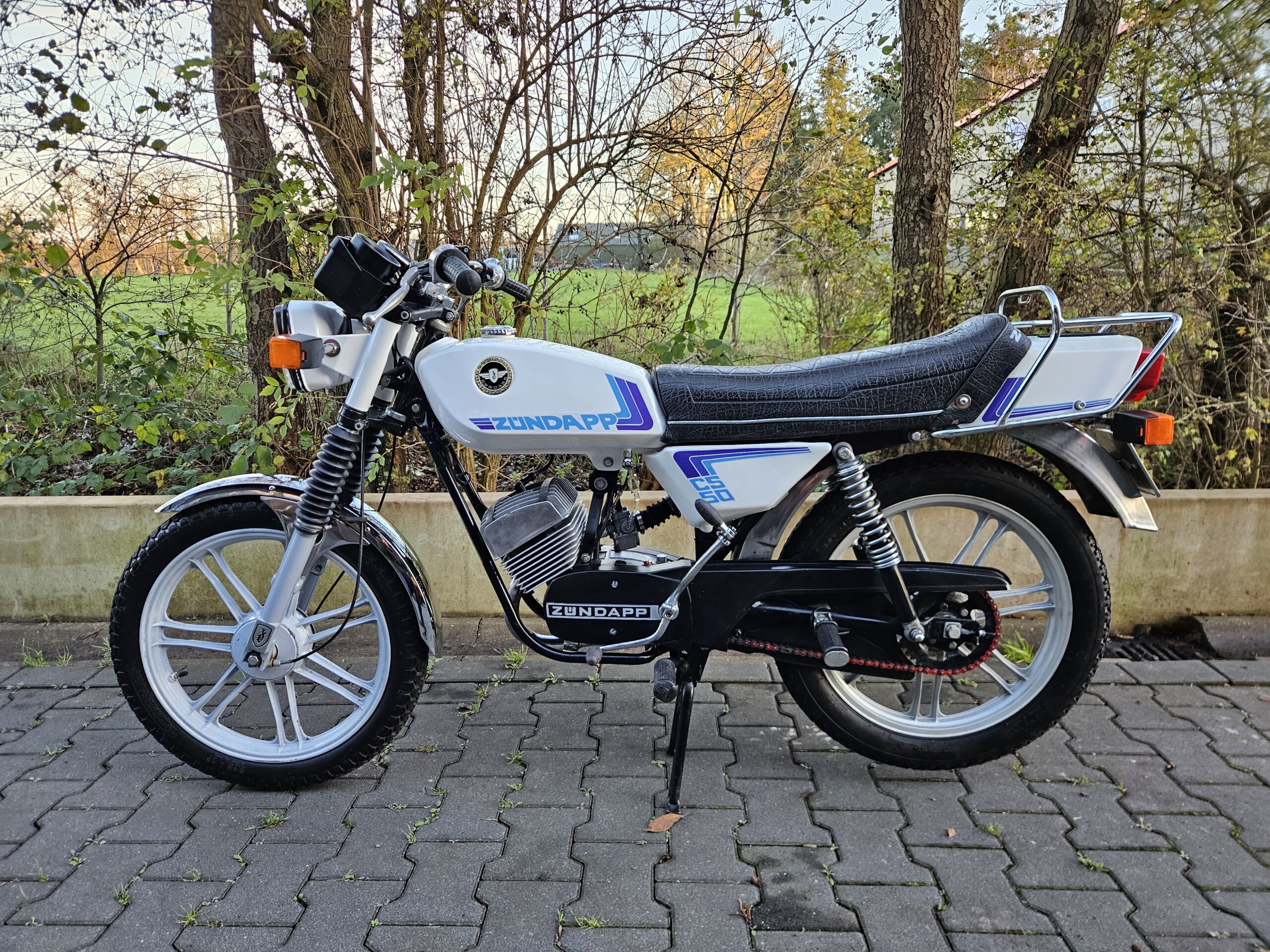 Zundapp 448 Sprinter. Mooi frisse witte lak. Voorzien van 4 bak met elektronische ontsteking. Loopt, rijdt, remt en schakelt goed.