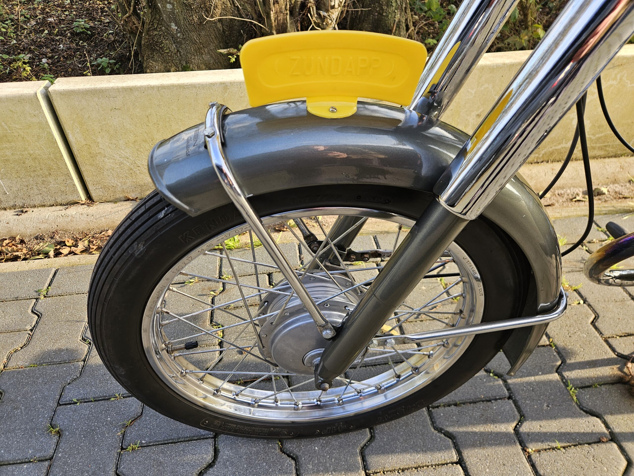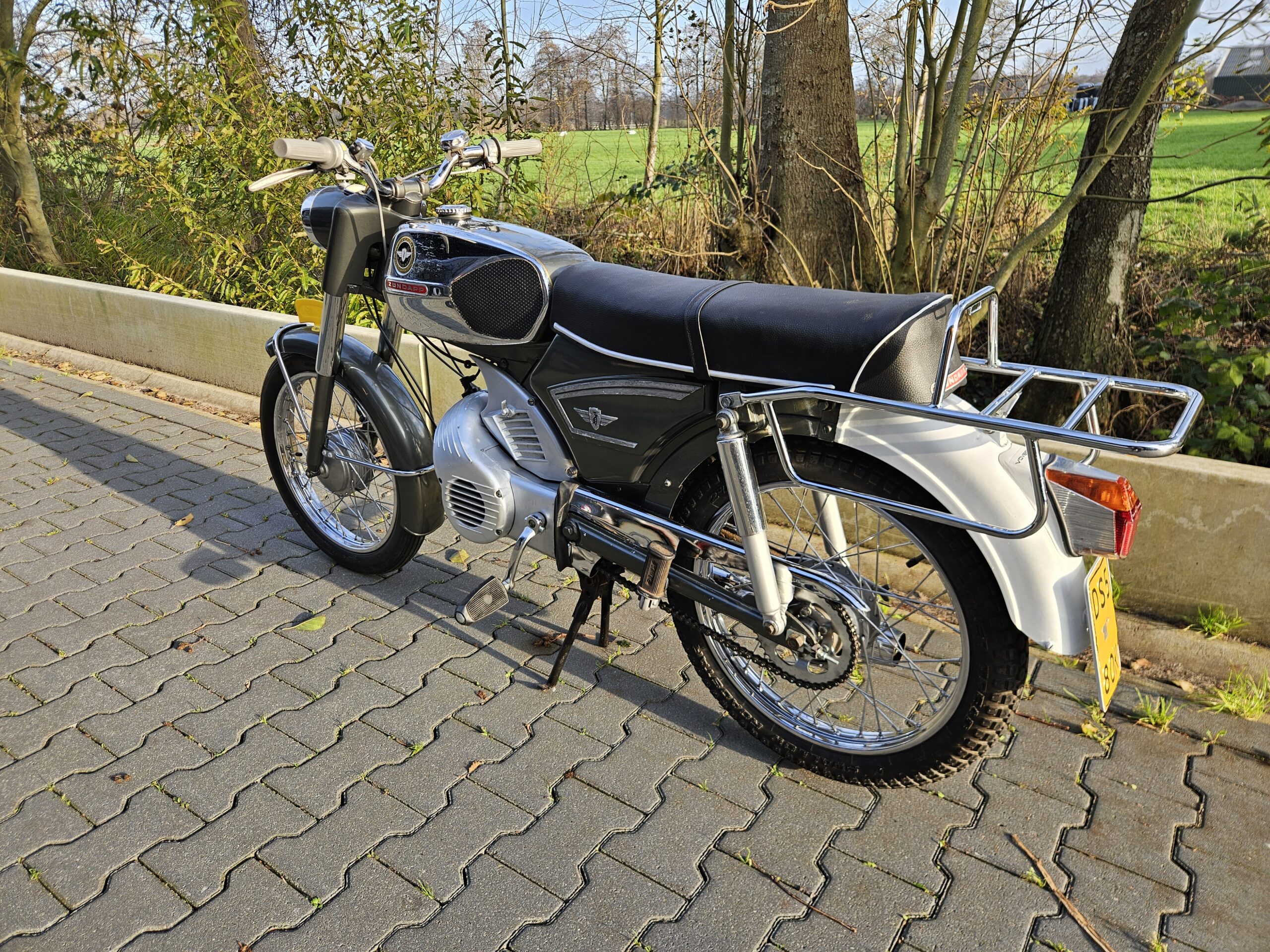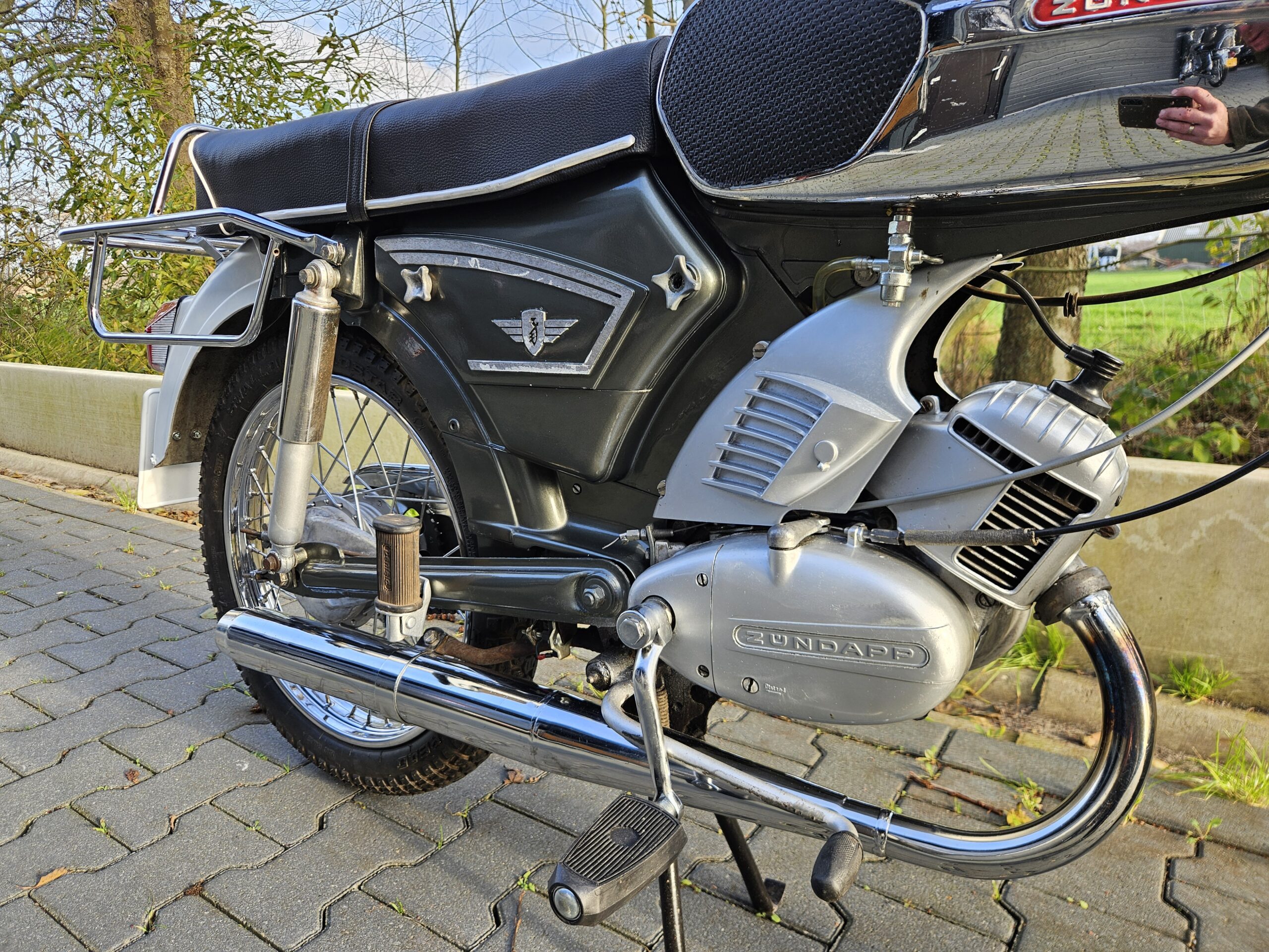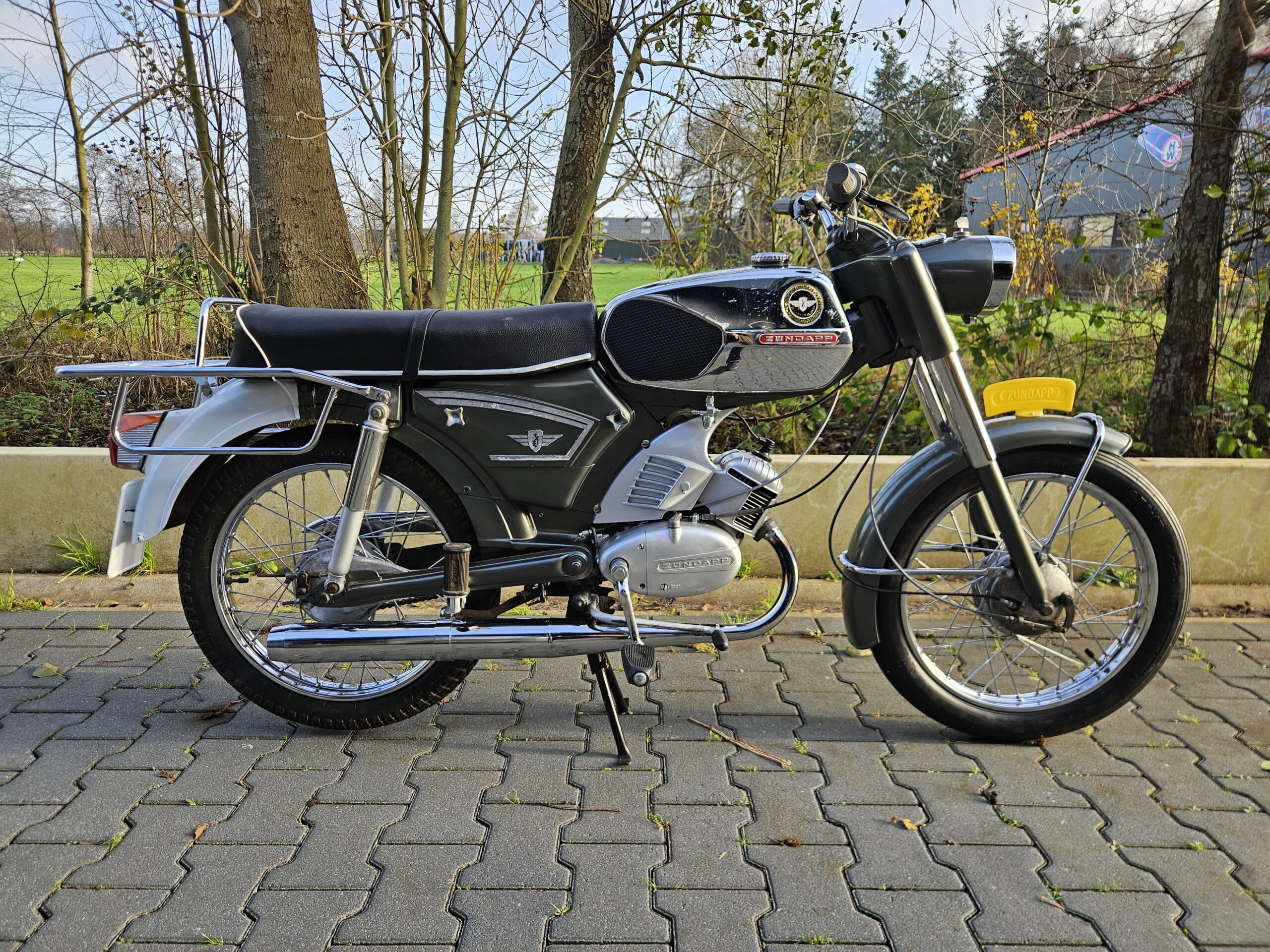 Deze Zundapp komt uit 1971 en is in NL geleverd. Door de jaren heen opgeknapt en overgespoten. Voorzien van nieuwe wielen, incl banden. Alles werkt en voorzien van kenteken. Loopt vlot. Originele kettingkast is aanwezig.