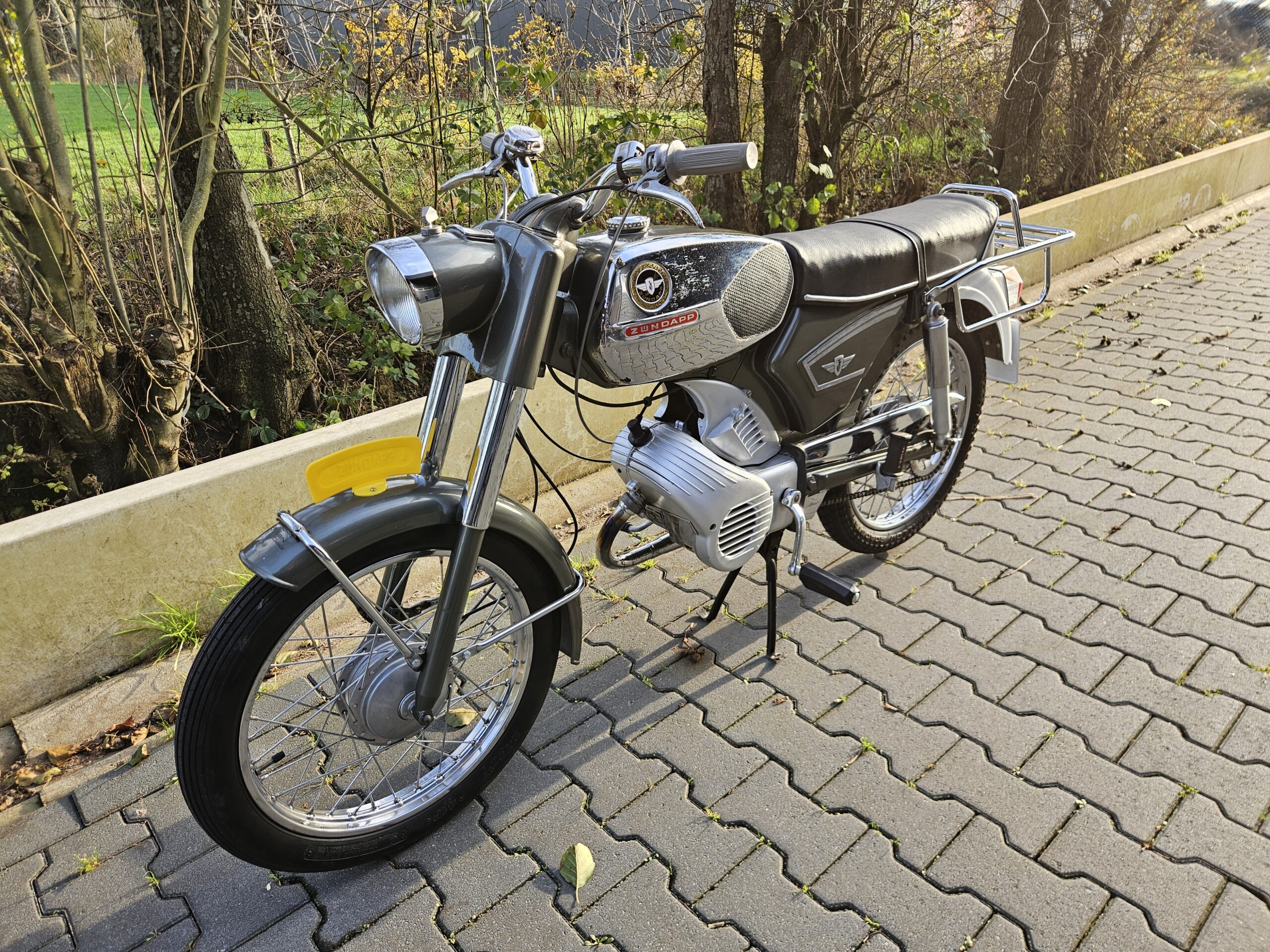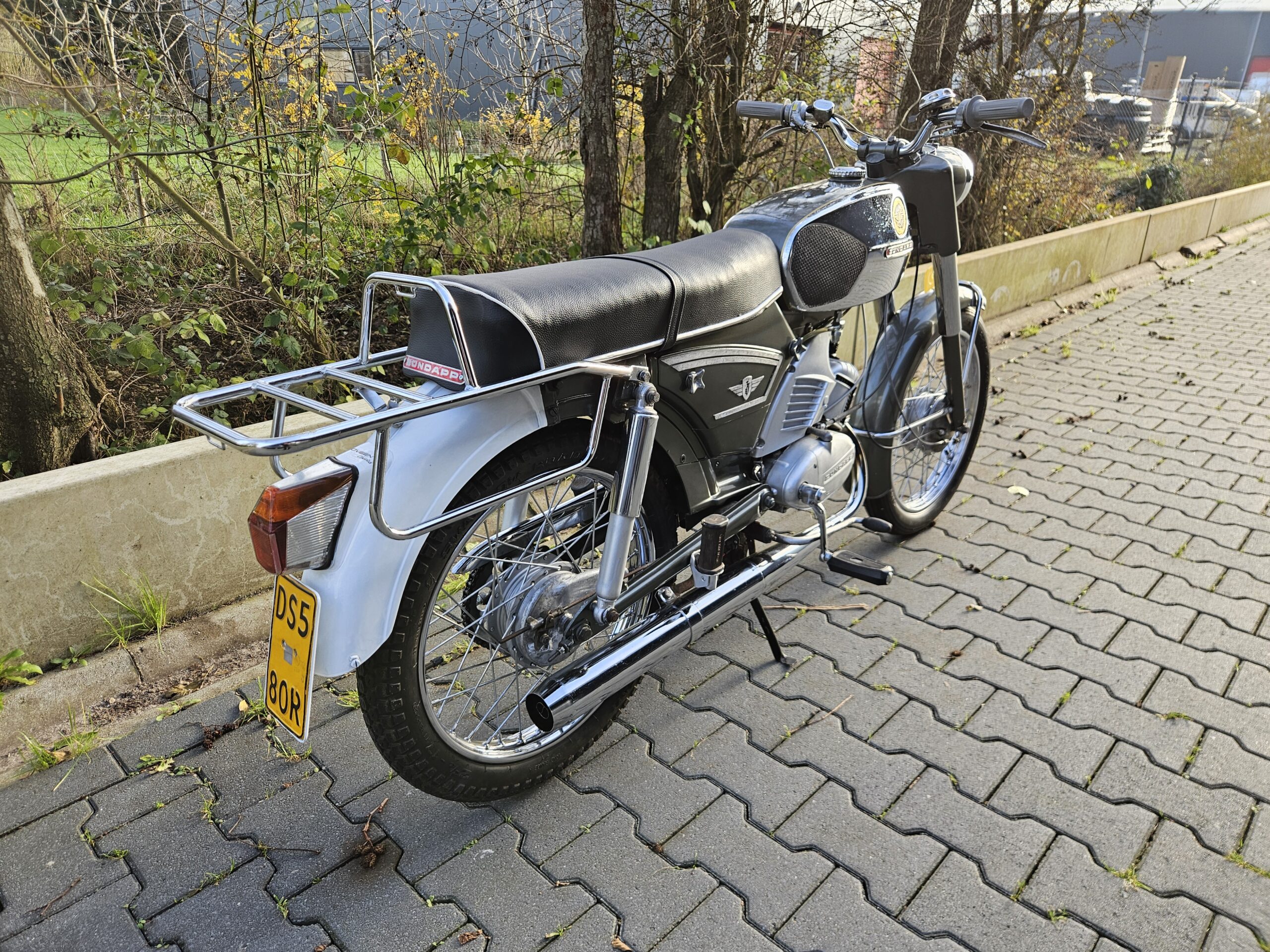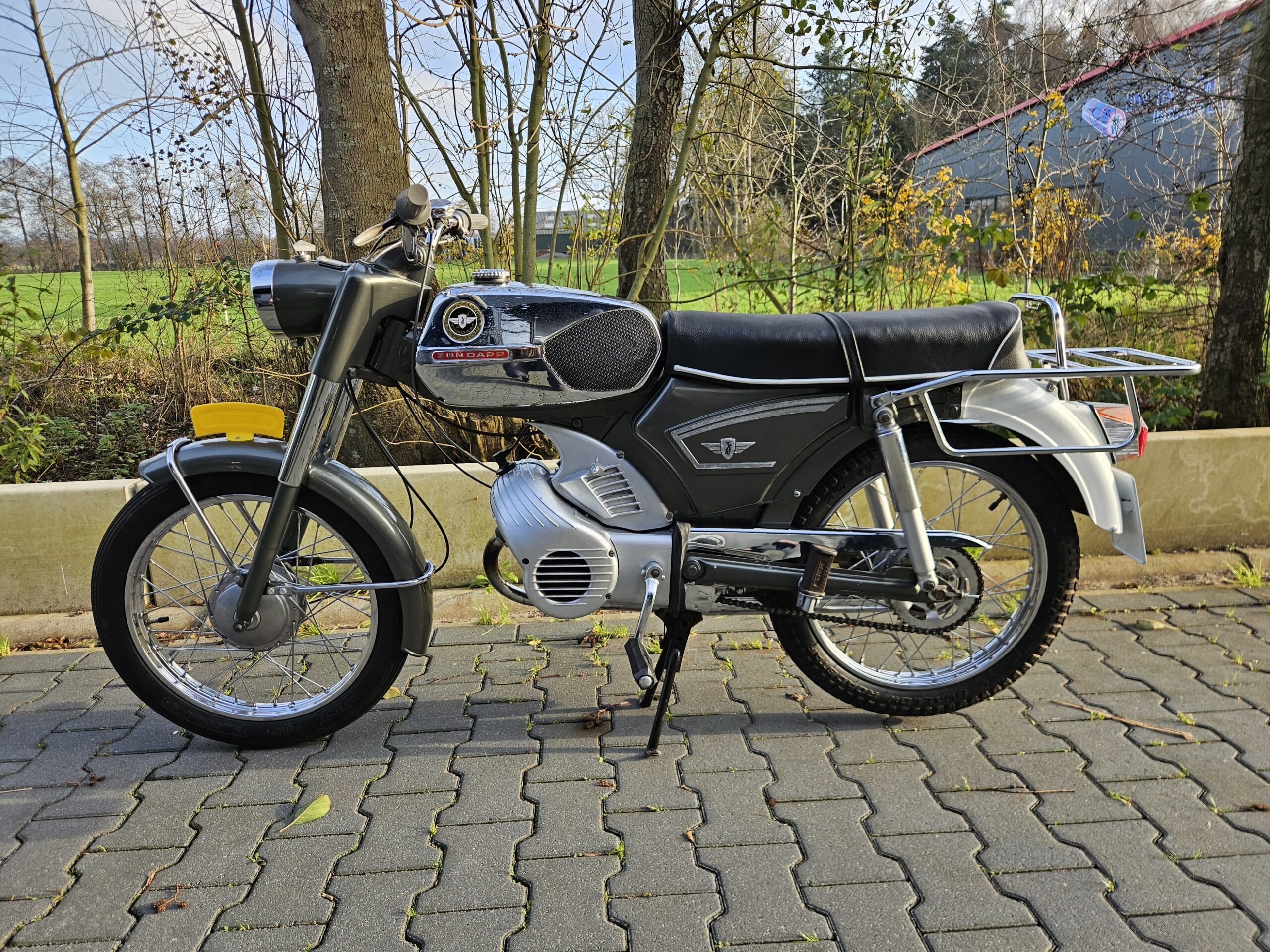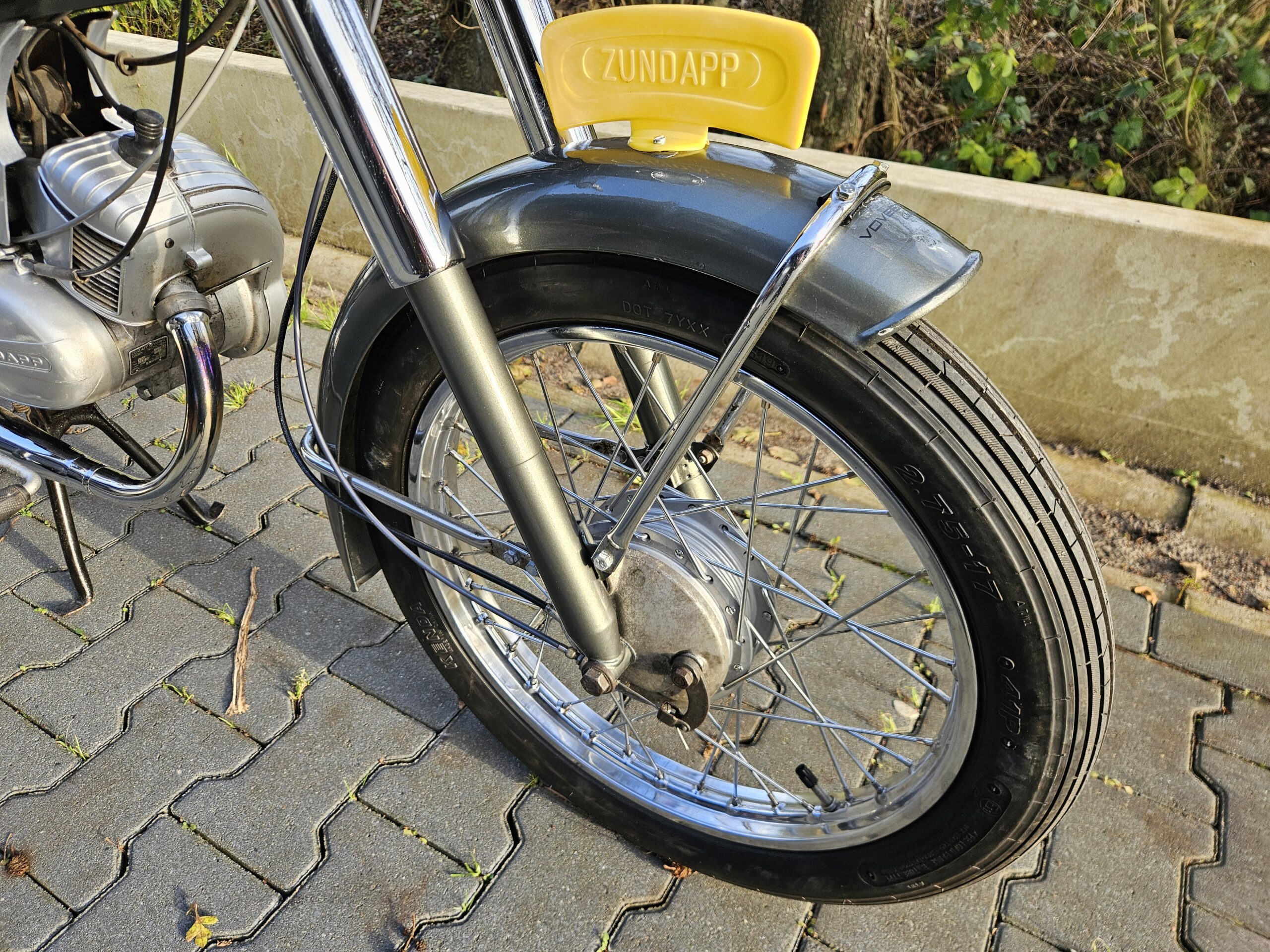 Deze Zundapp komt uit 1971 en is in NL geleverd. Door de jaren heen opgeknapt en overgespoten. Voorzien van nieuwe wielen, incl banden. Alles werkt en voorzien van kenteken. Loopt vlot. Originele kettingkast is aanwezig.